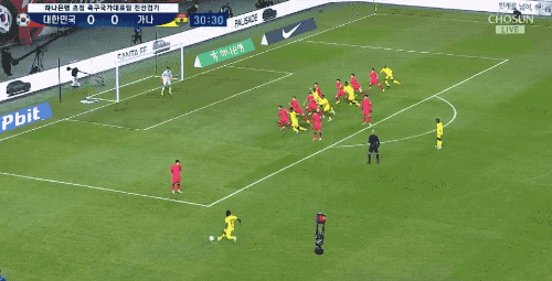 ในนาทีที่ 30 กานาได้ลูกฟรีคิกในแดนรุก ลูกบอลถูกโหม่งสกัดออกไป และซูเลย์มาน ซึ่งไม่ได้ทั้งเปิดบอลหรือยิงประตู ส่งบอลกลับคืนให้กับผู้รักษาประตูเกาหลีใต้