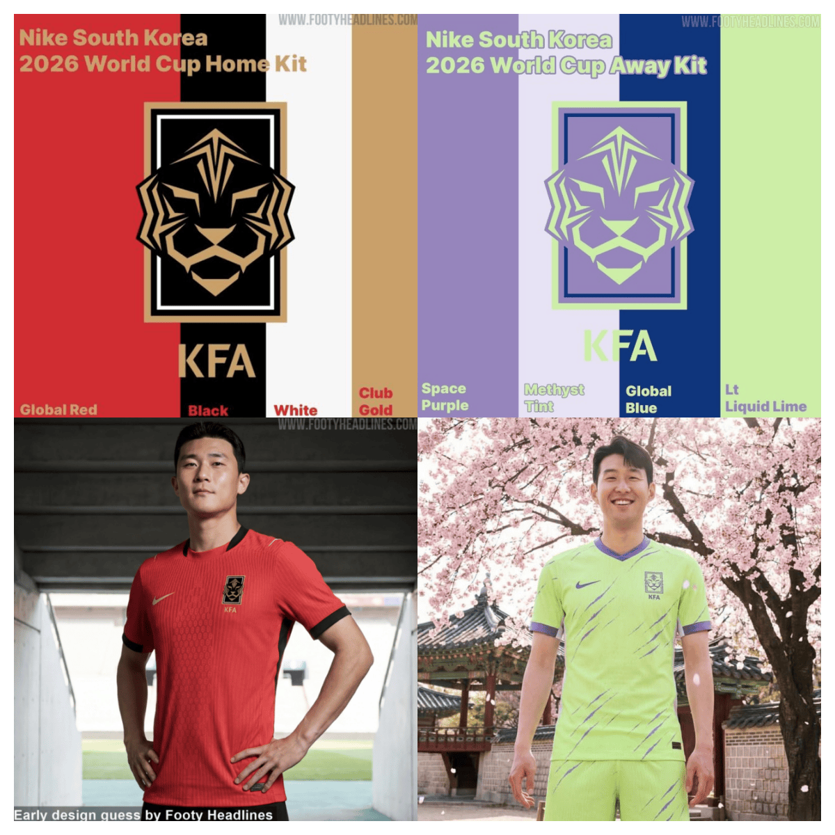 ในปีที่มีการแข่งขันรายการใหญ่ สมาคมฟุตบอลมักจะร่วมมือกับบริษัทออกแบบเพื่อเปิดตัวชุดแข่งขันใหม่ แล้วชุดแข่งขันของเกาหลีใต้สำหรับฟุตบอลโลก 2026 ที่สหรัฐอเมริกา-แคนาดา-เม็กซิโกจะเป็นอย่างไร?เมื่อเร็ว ๆ นี้ สื่อแห่งหนึ่งได้เผยแพร่ภาพสปายช็อตของชุดแข่งขันฟุตบอลโลกปี 2026 ของทีมชาติเกาหลีใต้ โดย Nike ได้เตรียมชุดเหย้าสีแดงและชุดเยือนสีเขียวสำหรับทีมชาติเกาหลีใต้ ซึ่งเป็นการต่อเนื่องจากดีไซน์ชุดเยือนสีน้ำเงินเข้มสำหรับทีมฟุตบอลหญิงของเกาหลีใต้ และในครั้งนี้ Nike ได้ขยายการใช้โทนสีที่ไม่ใช่สีดั้งเดิมสำหรับชุดเยือนมาสู่ทีมชาติชายด้วยเช่นกันก่อนหน้านี้ Nike ได้ออกแบบชุดแข่งสีขาวและดำให้กับทีมชาติเกาหลีใต้ จากภาพหลุดที่เผยออกมา ซน ฮึง-มิน ในชุดต้นแบบสีเขียว ดูสดใสและเปี่ยมไปด้วยพลังแห่งความเยาว์วัยอย่างไรก็ตาม หากพิจารณาจากการออกแบบชุดเหย้าแล้ว ชุดเยือนจะยังคงใช้โทนสีหลักเดิมแต่จะเพิ่มรายละเอียดเพิ่มเติมเข้าไป แล้วชุดแข่งของทีมชาติเกาหลีใต้จริง ๆ จะมีหน้าตาเป็นอย่างไร? ตามธรรมเนียมแล้ว Nike จะเปิดตัวชุดแข่งของทุกทีมในศึกฟุตบอลโลกในเดือนมีนาคม ซึ่งเราจะได้รู้กันในที่สุด! สำหรับตอนนี้ เราสามารถชมภาพตัวอย่างนี้ไปก่อน
