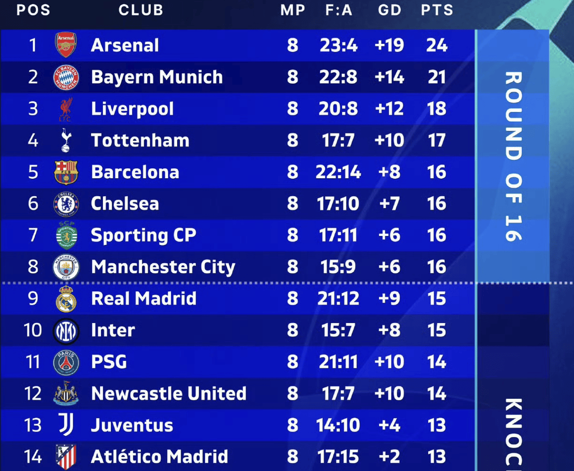 ท็อตแน่ม ฮ็อตสเปอร์ ได้ต่อสู้เพื่อความอยู่รอดในพรีเมียร์ลีก แต่ในแชมเปียนส์ลีก พวกเขากลับดูเหมือนทีมที่แตกต่างออกไปอย่างสิ้นเชิง ด้วยชัยชนะ 5 นัด เสมอ 2 นัด และแพ้ 1 นัด ทำให้พวกเขามีคะแนนสะสม 17 คะแนน อยู่ในอันดับที่ 4 ของกลุ่มแชมเปียนส์ลีก จากทั้งหมด 36 ทีม – นำหน้าคู่แข่งในพรีเมียร์ลีกอย่างเชลซี, แมนเชสเตอร์ ซิตี้ และนิวคาสเซิล ยูไนเต็ดในขณะเดียวกัน ในบรรดาทีมท็อปสามของลาลีกา บาร์เซโลนาอยู่อันดับที่ห้าด้วย 16 คะแนน เรอัล มาดริดอยู่อันดับที่เก้าด้วย 15 คะแนน และแอตเลติโก มาดริดอยู่อันดับที่สิบสี่ด้วย 13 คะแนน เป็นเรื่องยุติธรรมที่จะกล่าวว่าความล้มเหลวของเรอัล มาดริดในการคว้าตั๋วเข้ารอบแบ่งกลุ่มแชมเปียนส์ลีกโดยตรงในฤดูกาลนี้มีความเชื่อมโยงโดยตรงกับการมีอยู่ของท็อตแนม หากสเปอร์สทำผลงานในยุโรปได้แย่เท่ากับที่พวกเขาทำในพรีเมียร์ลีก พวกเขาจะพลาดการเข้ารอบน็อคเอาท์โดยตรง ทำให้เรอัล มาดริดสามารถไต่อันดับขึ้นมาหนึ่งอันดับและคว้าตั๋วเข้ารอบ 16 ทีมสุดท้ายได้โดยตรง