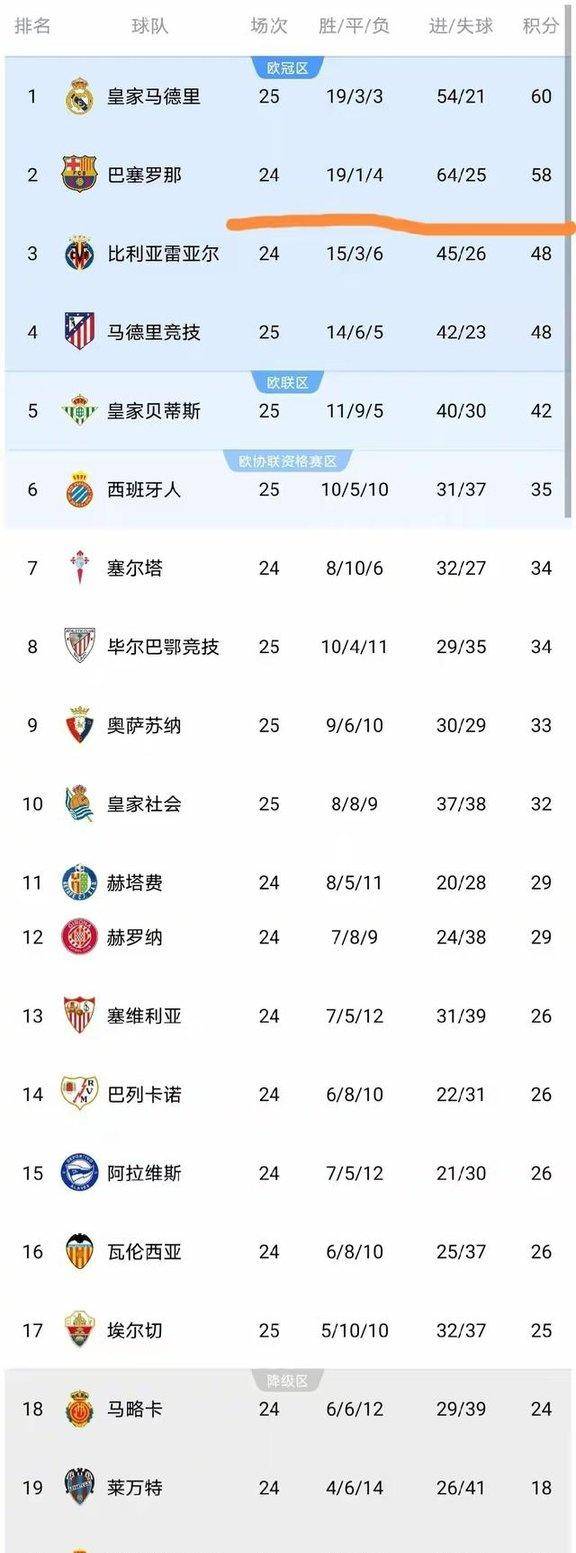 เมื่อดูจากตารางคะแนนโดยสังเขป เรอัล มาดริด อยู่ในโซนคว้าตั๋วแชมเปียนส์ลีกด้วยคะแนน 60 คะแนน บาร์เซโลนา 58 คะแนน แอตเลติโก มาดริด และบียาร์เรอัล มีคะแนนเท่ากันที่ 48 คะแนน เรอัล เบติส อยู่ในตำแหน่งที่จะได้ไปยูโรปาลีกด้วยคะแนน 42 คะแนน ขณะที่เอสปันญ่อลอยู่ในโซนคว้าตั๋วคอนเฟอเรนซ์ลีกด้วยคะแนน 35 คะแนน