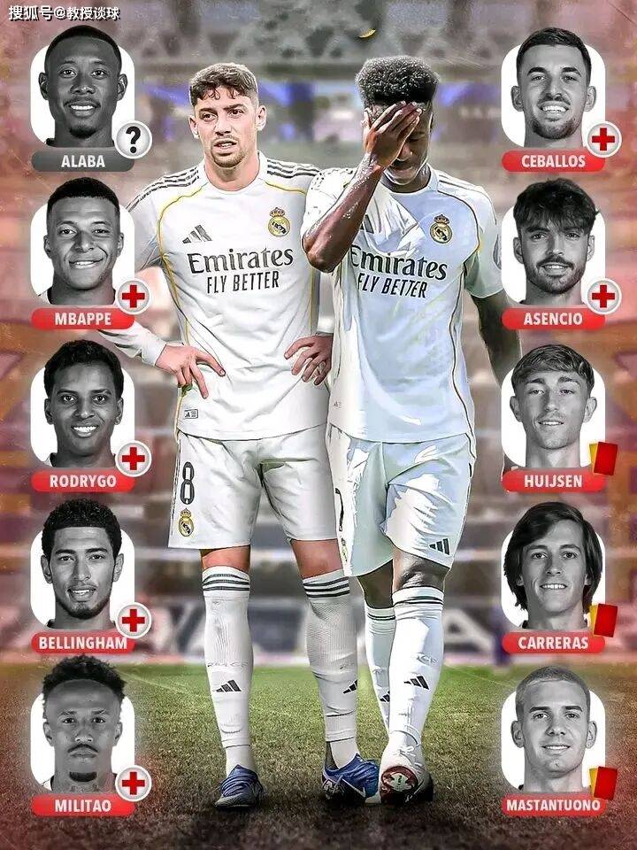 นับถอยหลัง: เป็นเวลา 9 ถึง 10 คนในการพิจารณาการขาดงาน + การระงับ หาก Alaba, Kama Wenga และ Asensio อยู่ในสภาพไม่ดี ตัวเลขจะยังคงเพิ่มขึ้นต่อไป กรณีที่เลวร้ายที่สุดคือ 12 คนไม่พร้อมใช้งาน และครึ่งหนึ่งของรายการเป็นครึ่งหนึ่งของรายการ