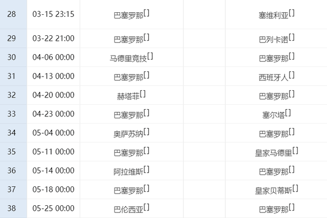 ตามตารางการแข่งขัน บาร์เซโลนาจะเป็นแขกรับเชิญกับแอตเลติโก มาดริดในรอบที่ 30 ในคิงส์คัพครั้งก่อน บาร์เซโลน่า แพ้คู่ต่อสู้ไป 4 นัด เกมนี้เป็นบททดสอบที่ยิ่งใหญ่สำหรับบาร์เซโลนาอย่างแน่นอน เมื่อพวกเขาแพ้ให้กับคู่ต่อสู้อีกครั้ง สถานการณ์ของลีกจะได้รับผลกระทบอย่างมาก ในรอบที่ 35 บาร์เซโลนาจะพบกับเรอัล มาดริดที่บ้านซึ่งเป็นเกมที่เด็ดขาดส่งผลกระทบอย่างเด็ดขาดต่อตำแหน่งแชมป์ ทั้งสองฝ่ายแพ้เรอัล มาดริด ระหว่างทางและกลับไปที่คอร์ทบ้านเกิด หากบาร์เซโลน่าไม่สามารถเอาชนะคู่ต่อสู้ได้ ผลการรบในฤดูกาลนี้จะไม่โดดเด่น แน่นอนว่าตอนนี้บาร์เซโลน่าได้เปรียบ 4 แต้มในมือ ในกรณีที่ชนะเกมอื่นได้สำเร็จ พวกเขาจะชนะรอบชิงชนะเลิศสองนัดกับแอตเลติโก มาดริด และเรอัล มาดริด ตราบใดที่พวกเขาชนะ 1 เกม บาร์เซโลนาจะคว้าแชมป์ โดยรวมแล้ว ตอนนี้บาร์เซโลนาได้ใช้ความคิดริเริ่มอย่างสมบูรณ์ และพวกเขาควบคุมชะตากรรมของตนเองอย่างแน่นหนา ตราบใดที่โซ่ไม่หลุดในช่วงเวลาวิกฤติ บาร์เซโลนาจะมีโอกาสสูงที่จะคว้าแชมป์ลาลีกา!