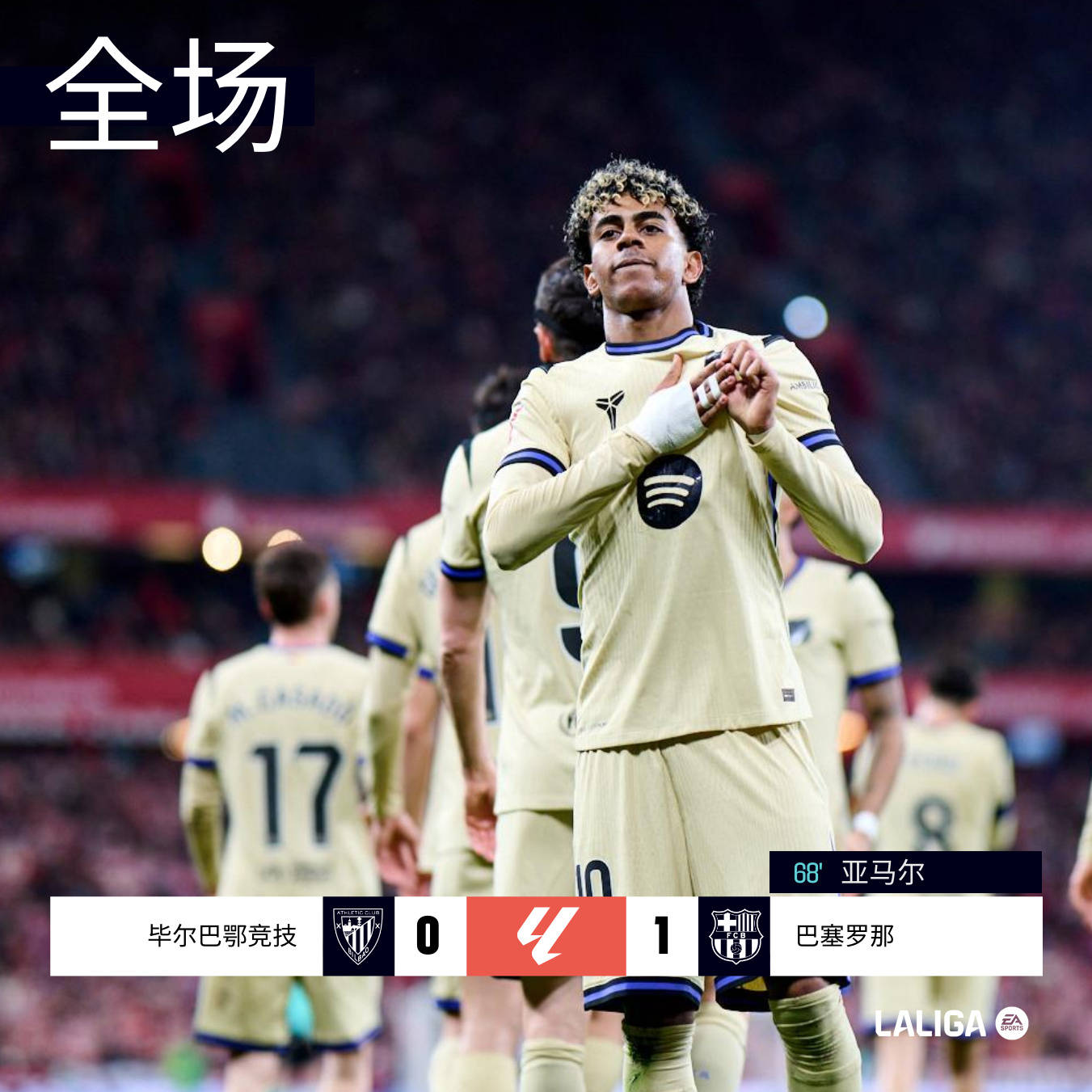 จนกระทั่งนาทีที่ 68 ที่การหยุดชะงักของเกมพังหมด หลังจากที่ Pedry กำจัดแนวรับจากทางซ้ายอย่างต่อเนื่อง เขาส่งการส่งบอลข้ามที่แม่นยำขนาดใหญ่ ยามาลรับบอลในเขตโทษแล้วยิงประตูไกลออกไปและบอลพุ่งตรงเข้าตาข่าย บาร์เซโลน่า ทำลายการหยุดชะงัก 1-0! ประตูนี้ยังเป็นประตูเดียวในเกม