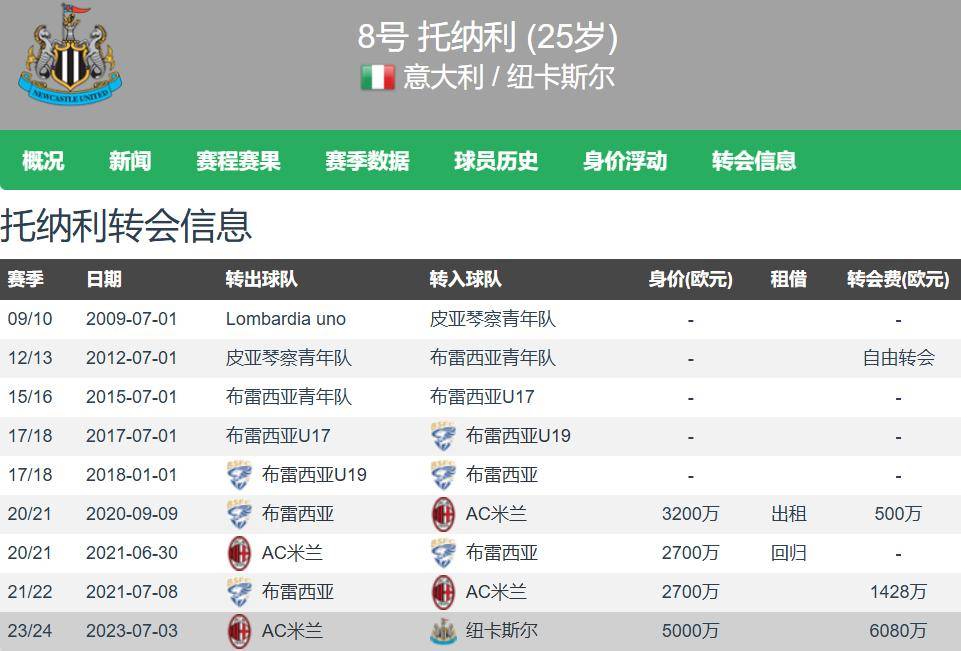 รายงานล่าสุดจากนักข่าว Longgo, Tonali วางแผนที่จะเข้าร่วมทีมยักษ์ใหญ่ในพรีเมียร์ลีกหรือลาลีกาในช่วงซัมเมอร์นี้ เพื่อพัฒนาอาชีพของเขาต่อไปและไล่ตามเกียรติยศมากขึ้น ปัจจุบัน โทนาลี กำลังเล่นให้กับนิวคาสเซิล ซึ่งเป็นยูคาริโอตของกองกลางของทีม ดังนั้น โทนาลีจึงเข้าร่วมทีมยักษ์ใหญ่ในพรีเมียร์ลีก และมีสองทีมของยักษ์ใหญ่ของลาลีกา จักรพรรดิ SA Tonali หวังว่าจะกลับไปที่ AC Milan ในอีกประมาณ 29 ปีต่อมาในสี่ปี