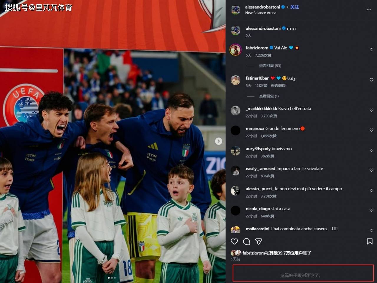 มีรายงานว่าแฟน ๆ สุดขั้วหลายคนจับสื่อสังคมออนไลน์ของ Bastoni ซึ่งทำให้เขาต้องปิดฟังก์ชั่นการประเมินชั่วคราวซึ่งไม่สามารถจ่ายได้จริงๆ