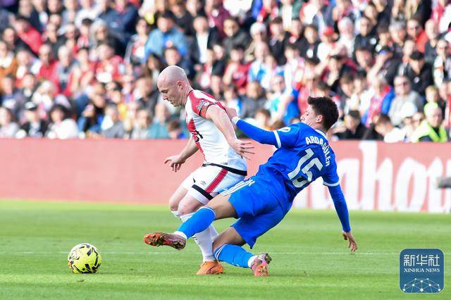 ↑ คาร์เรราสของเรอัล มาดริด (ซ้าย) ต่อสู้เพื่อแย่งบอลกับลาชูของราโย บาเยกาโน่ ระหว่างการแข่งขัน