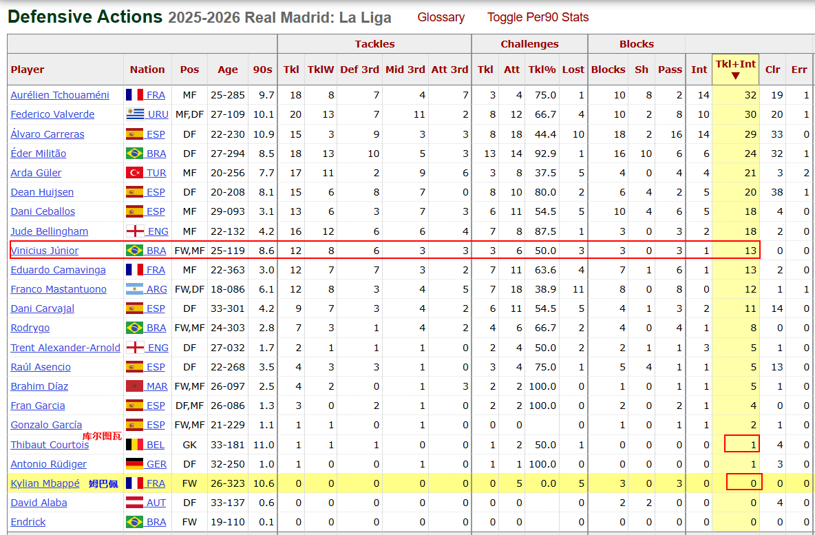 พูดตรงๆ ก็คือ การมีส่วนร่วมในการป้องกันที่ขาดความกระตือรือร้นของเอ็มบัปเป้ได้บังคับให้วินิซิอุสต้องใช้พลังงานทางจิตใจมากขึ้นในการรักษาสมดุลระหว่างการโจมตีและการป้องกันหลังจากลงเล่นครบ 90 นาทีเต็ม 9.6 นัดในฤดูกาลนี้ วินิซิอุสได้ทำการเข้าสกัดและตัดบอลไปแล้ว 16 ครั้ง โดยมักถูกใช้งานเป็นกำลังหลัก