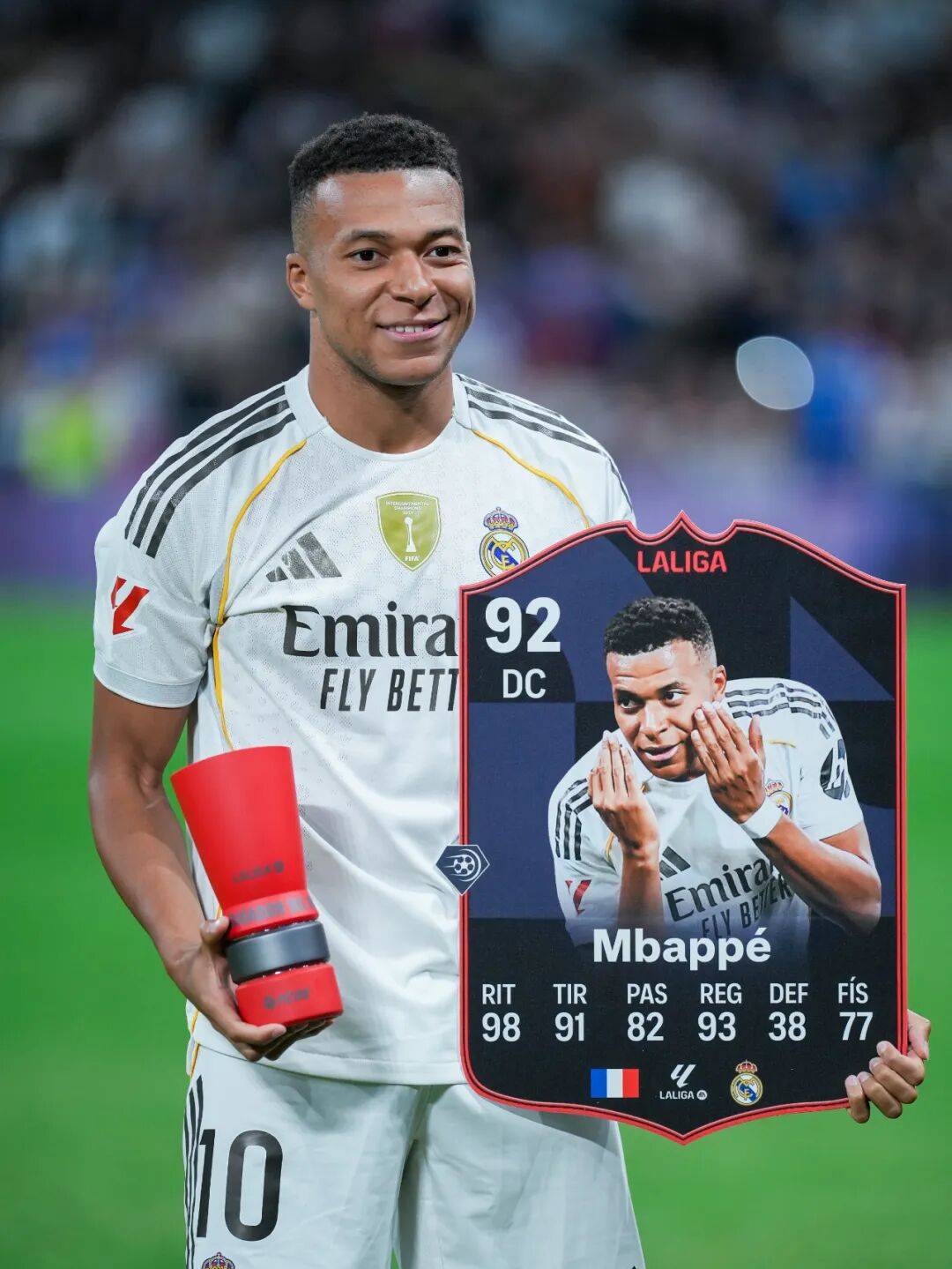 ก่อนการแข่งขันลาลีกา รอบ 10 กับบาเลนเซีย, เอ็มบัปเป้ได้นำเกียรติยศล่าสุดของเขามาแสดงต่อหน้าแฟนบอลที่สนามเบอร์นาเบว: พร้อมกับรางวัลรองเท้าทองคำ, ถ้วยรางวัลสีแดงสำหรับนักเตะยอดเยี่ยมประจำเดือนตุลาคมเขายังได้รับรางวัลนักเตะยอดเยี่ยมประจำเดือนของลาลีกาในเดือนกันยายนอีกด้วย นี่เป็นครั้งแรกนับตั้งแต่ที่ลิโอเนล เมสซี่ คว้ารางวัลติดต่อกันในเดือนเมษายนและพฤษภาคม 2018 ที่นักเตะคนใดคนหนึ่งสามารถคว้าชัยชนะติดต่อกันได้ รางวัลนี้ต้องการผลงานและสถิติที่แท้จริงเพื่อโน้มน้าวผู้ตัดสิน ปราศจากรัศมีของซูเปอร์สตาร์ ในเจ็ดนัดในสองเดือนนี้ เอ็มบัปเป้ทำได้แปดประตู ช่วยให้ทีมของเขาชนะในเอล กลาซิโก และเสริมความแข็งแกร่งในการนำของพวกเขาในการแข่งขันกับบาเลนเซีย นักเตะชาวฝรั่งเศสยิงสองประตูอีกครั้ง คว้าตำแหน่งนักเตะยอดเยี่ยมประจำการแข่งขันไปอย่างไม่มีข้อโต้แย้ง ยอดรวมประตูในลีกของเขาตอนนี้อยู่ที่ 13 ประตู เกือบสองเท่าของจูเลียน อัลวาเรซ ผู้อยู่ในอันดับสองที่มีฉายาว่า "แมงมุมน้อย" ในทุกรายการแข่งขัน เขาได้มีส่วนร่วม 18 ประตูและ 2 แอสซิสต์จากการลงสนาม 16 นัด