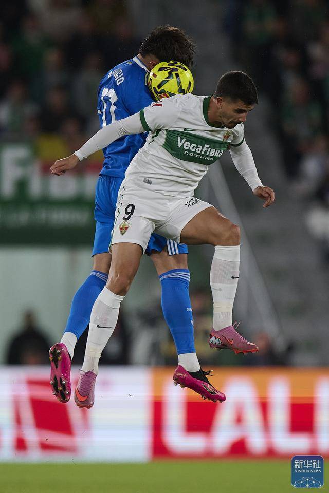 ↑ กีเยร์เม่ของเรอัล มาดริด (ขวา) ต่อสู้เพื่อแย่งบอลกับดิแองกานาของเอลเช่ระหว่างการแข่งขัน