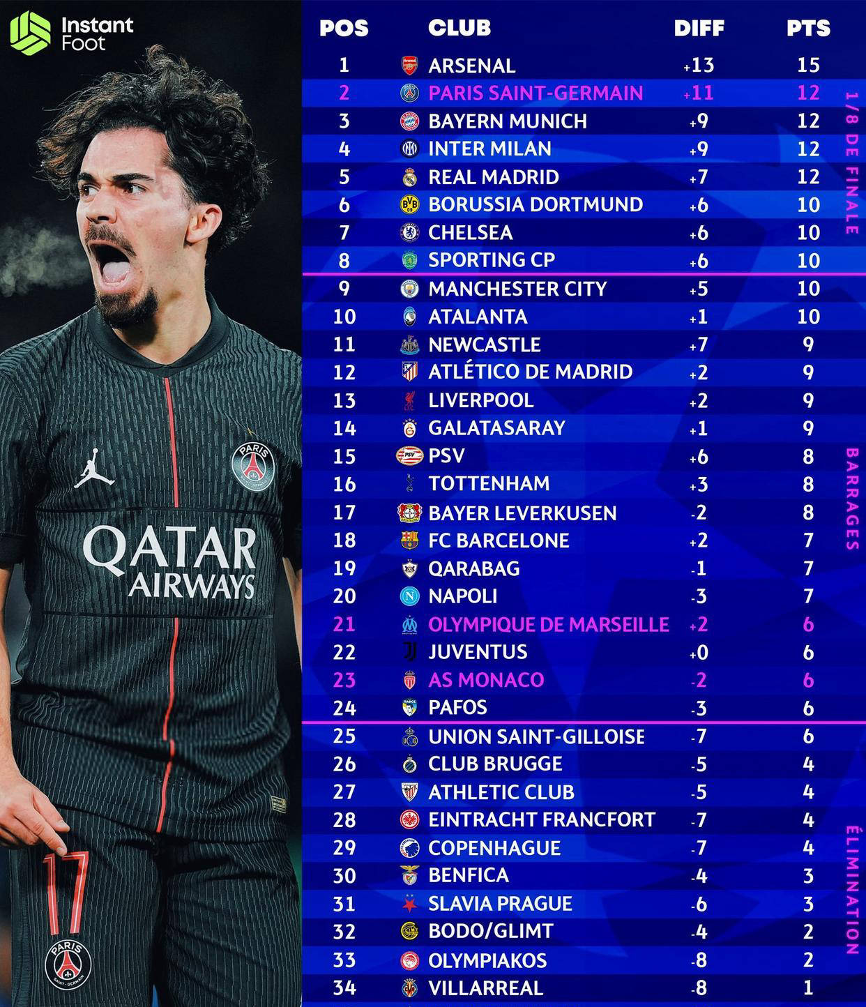 สถานการณ์ของแอตเลติโก มาดริดค่อนข้างชัดเจน: หากต้องการจบอันดับที่ห้าเหมือนฤดูกาลที่แล้ว พวกเขาต้องชนะทั้งสามนัดที่เหลือ หากเป้าหมายคือการจบในอันดับท็อปแปด พวกเขาไม่สามารถพลาดได้แม้แต่นัดเดียว ในขณะที่การผ่านเข้ารอบเพลย์ออฟเป็นความท้าทายที่จัดการได้มากกว่าเล็กน้อย นัดที่เหลือต้องออกไปเยือนพีเอสวี ไอนด์โฮเฟ่น และกาลาตาซาราย ตามด้วยเกมเหย้ากับโบโด/กลิมท์ในรอบสุดท้าย - แต่ละนัดมีความสำคัญอย่างยิ่งต่อโอกาสในการผ่านเข้ารอบของพวกเขา