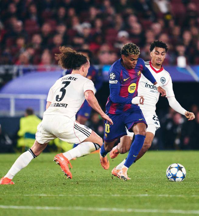 แฟรงค์เฟิร์ตทำให้บาร์เซโลน่าหนาวสั่นเมื่อชอบิบียิงจากขอบเขตโทษกระแทกคานประตู หลังจากหนีไปได้อย่างหวุดหวิด บาร์ซ่าก็กลับมาขึ้นนำอีกครั้งในนาทีที่ 52ยาร์โมเลนโก้เปิดบอลจากฝั่งซ้าย และคูเด้ยโหม่งทำประตูที่สองของเขาในสามนาทีเพื่อนำบาร์ซ่าขึ้นนำ 2-1 ด้วยการแอสซิสต์นี้ ยาร์โมเลนโก้แซงหน้าเอ็มบัปเป้ กลายเป็นผู้ทำประตูสูงสุดในประวัติศาสตร์แชมเปียนส์ลีกก่อนอายุ 19 ปี ด้วยจำนวน 14 ประตู