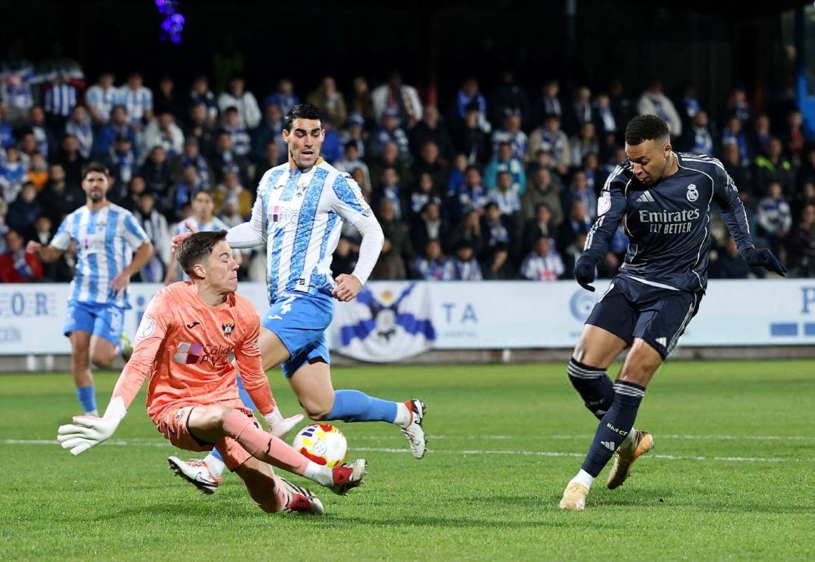 การโจมตีอย่างไม่ลดละของเรอัล มาดริด ได้ถึงจุดสูงสุดในนาทีที่ 41 เมื่อกองหลังทำแฮนด์บอลในเขตโทษ ทำให้ทีมเยือนได้จุดโทษ คีเลียน เอ็มบัปเป้ ยิงจุดโทษเข้าไปอย่างเยือกเย็น ทำให้ทีมของเขาขึ้นนำ 1-0 ก่อนหมดครึ่งแรก เอ็มบัปเป้เปิดบอลให้ฝ่ายตรงข้ามทำเข้าประตูตัวเอง ทำให้เรอัล มาดริดกลับเข้าสู่ห้องแต่งตัวด้วยสกอร์นำ 2 ประตู