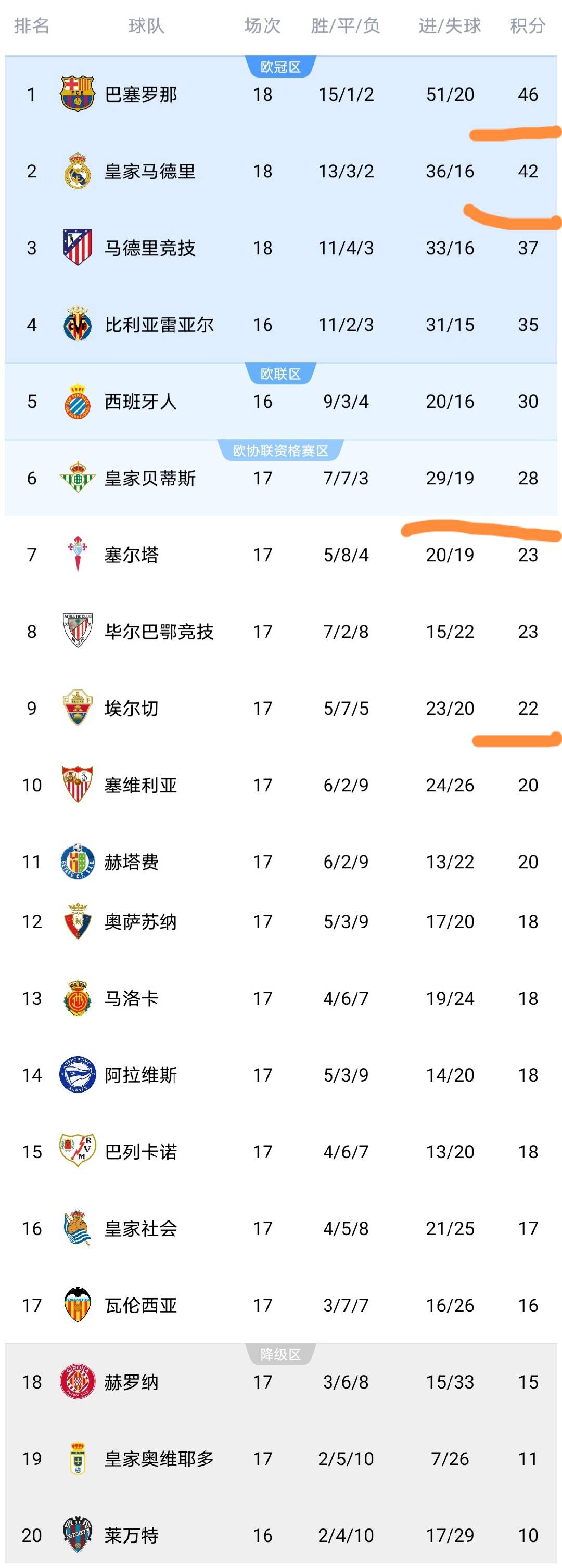 น่าสังเกตว่าในตารางลีกปัจจุบัน ช่องว่างระหว่างอันดับที่สี่และหกอยู่ที่เจ็ดแต้มอย่างมีนัยสำคัญ ในขณะที่ช่องว่างระหว่างอันดับที่ห้าและเจ็ดก็อยู่ที่เจ็ดแต้มเช่นกัน ซึ่งแสดงให้เห็นว่าความแตกต่างด้านความแข็งแกร่งระหว่างทีมในลาลีกายังคงชัดเจน โดยมีการแบ่งระดับการแข่งขันที่ชัดเจน ต่างจากพรีเมียร์ลีกที่มีการต่อสู้อย่างดุเดือดเพื่อแย่งอันดับที่สี่ ภูมิทัศน์การแข่งขันของลาลีกามีลักษณะคล้ายกับการแข่งขันในระดับย่อยภายในแต่ละระดับมากกว่าการแย่งชิงกันอย่างเต็มที่