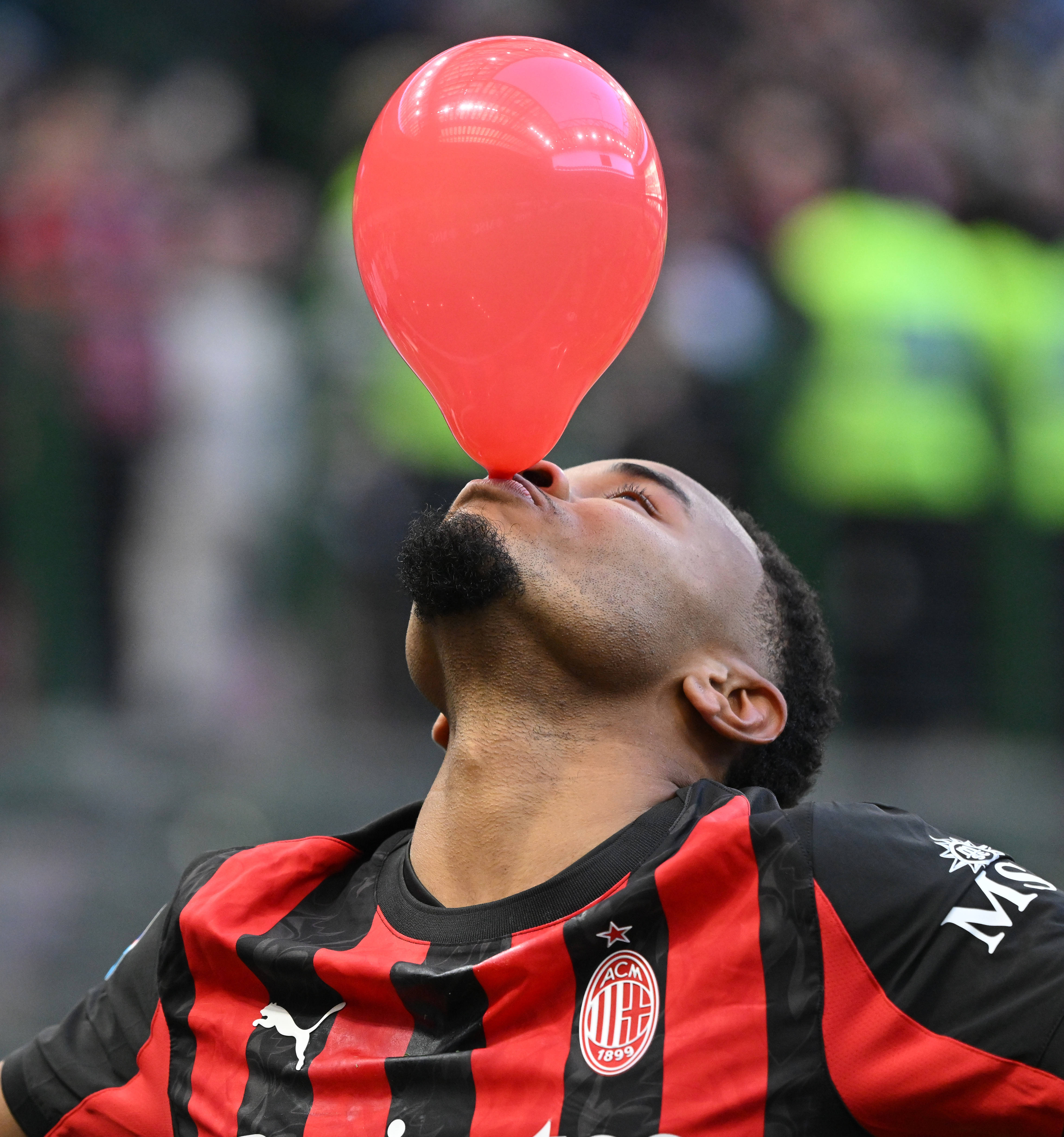 เมื่อวันที่ 28 ธันวาคม คริสโตเฟอร์ เอ็นคุนคู นักเตะของเอซี มิลาน ฉลองประตูแรกของเขาในนัดนี้ สำนักข่าวซินหัว (ภาพโดย อัลแบร์โต ลิงเกีย)