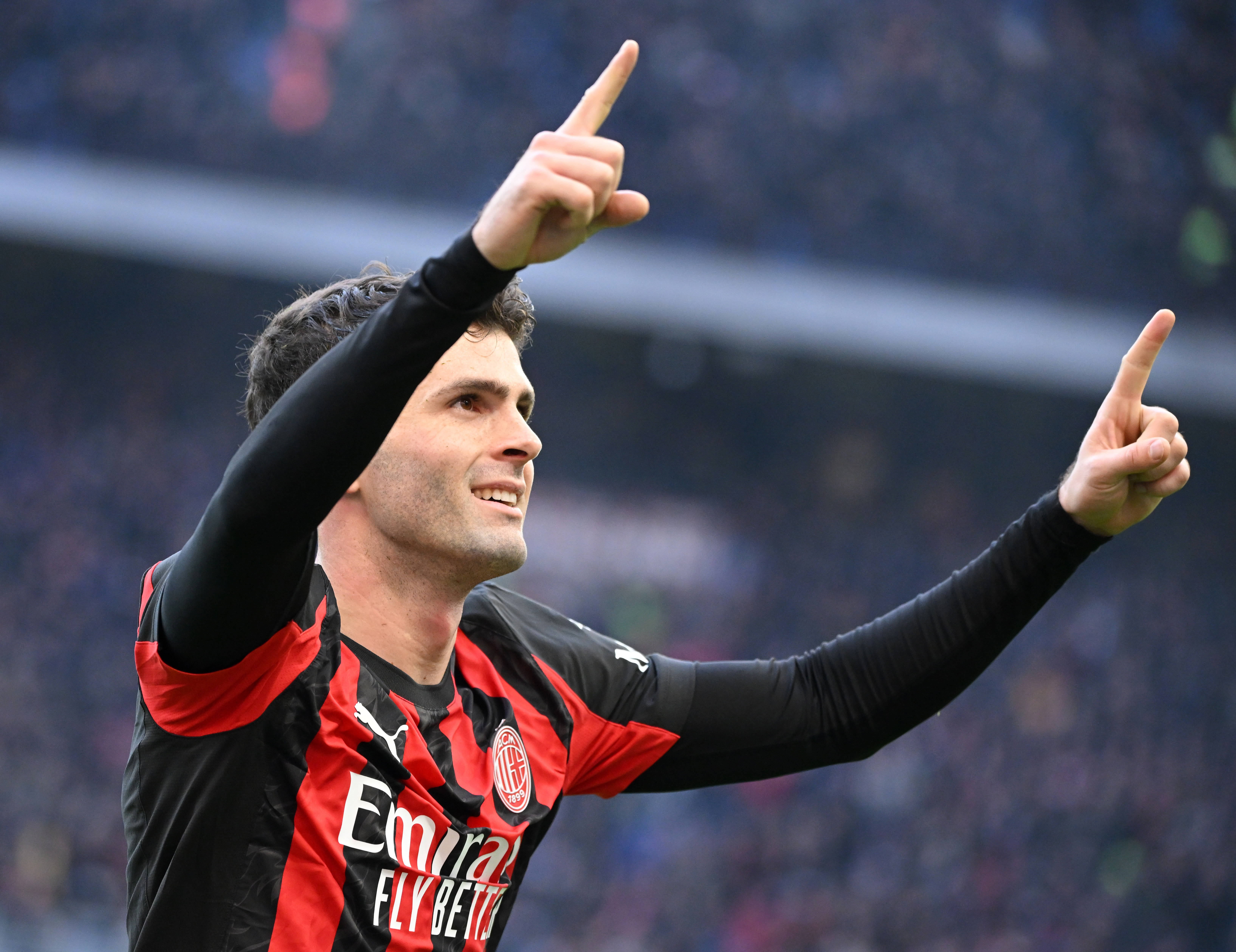 เมื่อวันที่ 28 ธันวาคม คริสเตียน พูลิซิช นักเตะเอซี มิลาน (กลาง) ฉลองการทำประตู สำนักข่าวซินหัว (ภาพโดย อัลแบร์โต ลิงเลีย)