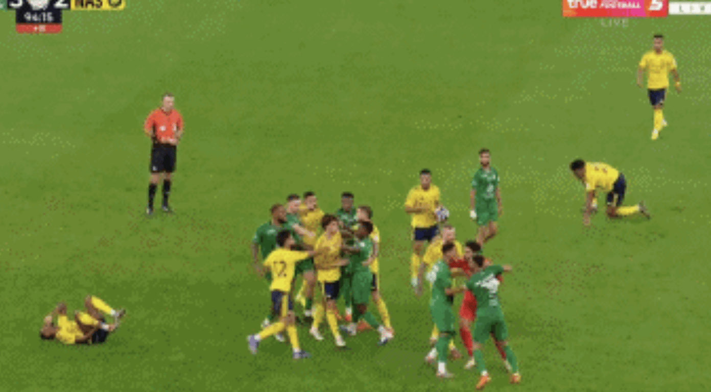 การเล่นซ้ำแบบสโลว์โมชั่นแสดงให้เห็นว่าผู้เล่นอัล นาสร์สิบเอ็ดคนในสนามสิบคนมีส่วนร่วมในเหตุการณ์ทะเลาะวิวาท รวมถึงผู้รักษาประตูที่วิ่งมาจากด้านหลัง อย่างไรก็ตาม คริสเตียโน่ โรนัลโด้ยังคงไม่ปรากฏตัวให้เห็นอย่างชัดเจน ผู้ชมที่อยู่ในเหตุการณ์รายงานว่าแม้หลังจากที่เฟลิกซ์ถูกทำร้าย โรนัลโด้ก็ไม่ได้เข้าไปปกป้องเพื่อนร่วมทีมของเขา