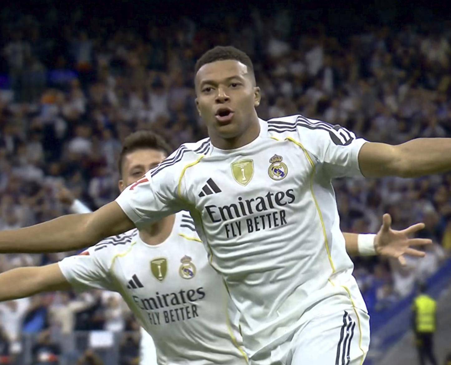 ในนาทีที่ 14 เอ็มบัปเป้ยิงวอลเลย์สุดสวยจากนอกกรอบเขตโทษโดยไม่ควบคุมบอลเลย บอลพุ่งเป็นลูกระดับโลกชนคานก่อนถูกตัดสินว่าล้ำหน้า แม้จะยอดเยี่ยมแต่ประตูไม่ถูกนับ ในนาทีที่ 22 เบลลิงแฮมหลบแนวรับบาร์เซโลนาอย่างคล่องแคล่วก่อนจะจ่ายบอลทะลุช่องอย่างแม่นยำให้เอ็มบัปเป้หลุดเดี่ยวไปยิงประตูให้เรอัล มาดริดขึ้นนำ 1-0ประตูนี้ทำให้สถานะของเอ็มบัปเป้ในฐานะศัตรูตัวฉกาจในเอล กลาซิโกแข็งแกร่งยิ่งขึ้น โดยเขาทำประตูได้ในสี่นัดติดต่อกันที่พบกับบาร์เซโลนา จนถึงปัจจุบัน เขาทำประตูได้ 12 ประตูจากการลงสนาม 9 นัดที่พบกับทีมจากแคว้นกาตาลัน นอกจากนี้ ยังเป็นการทำประตูในลาลีกา 7 นัดติดต่อกัน ซึ่งถือเป็นสถิติส่วนตัวใหม่ของเขาอีกด้วย