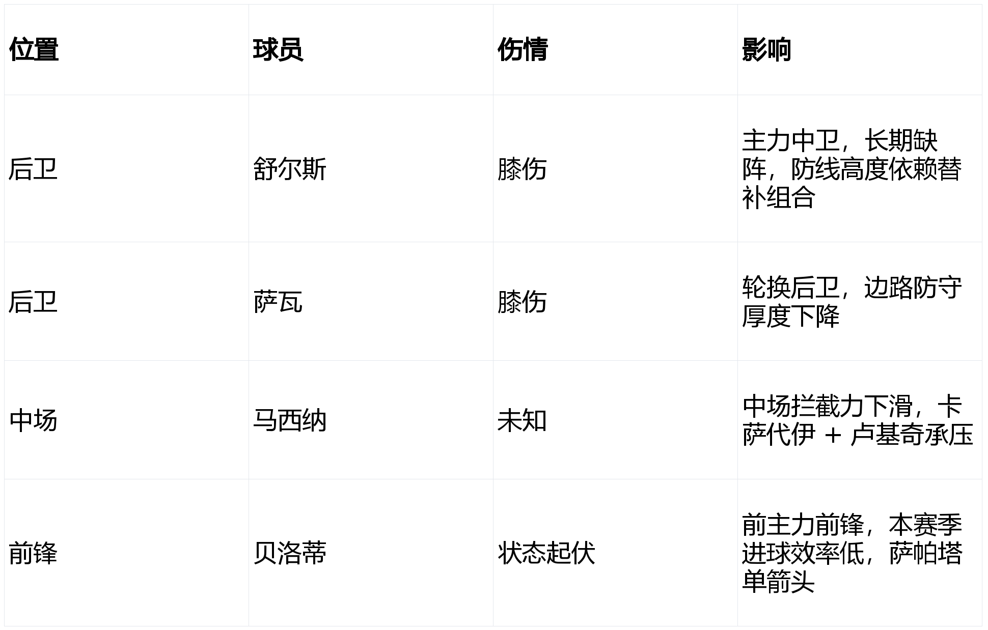 โรม่า (ผู้เล่นบาดเจ็บสามคน; การหมุนเวียนในแดนกลางและแนวรุกสามารถจัดการได้)