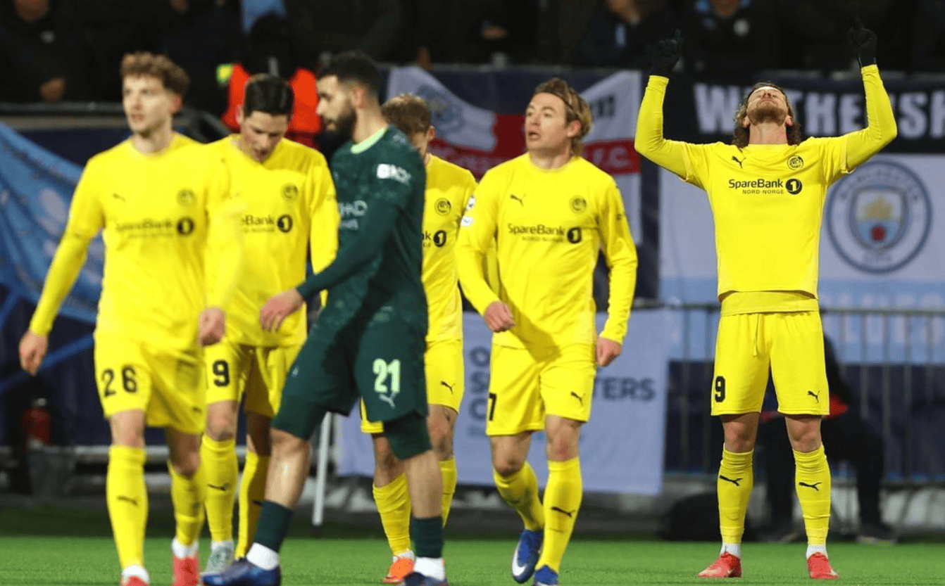 เป๊ป กวาร์ดิโอลา สร้างสถิติที่น่าอับอาย: แมนเชสเตอร์ ซิตี้ กลายเป็นทีมอังกฤษทีมแรกที่แพ้ให้กับโบโด/กลิมท์ ในการแข่งขันระดับยุโรปที่สำคัญ ซิตี้ได้ เออร์ลิง ฮาแลนด์ กองหน้าดาวเด่นของทีมอีกครั้งที่ไม่สามารถทำประตูได้ โดยยิงสามครั้งแต่ไม่มีครั้งใดที่เข้ากรอบ กองหน้าค่าตัว 200 ล้านยูโรกำลังประสบปัญหาการขาดประตูที่หายาก โดยไม่สามารถทำประตูได้สี่นัดติดต่อกันและแปดนัดติดต่อกันโดยไม่มีประตูจากการเล่นปกติ