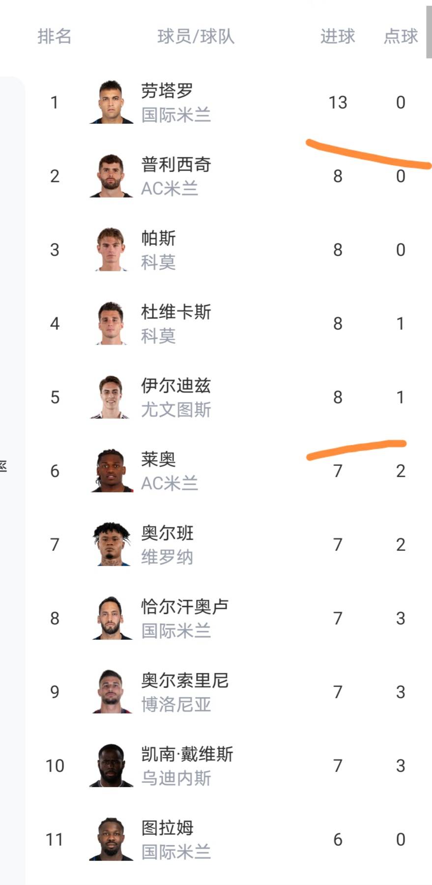 มีเพียงเลาตาโร่เท่านั้นที่ทำประตูได้ถึงสองหลักในรายชื่อผู้ทำประตูจนถึงตอนนี้