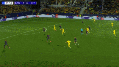 ในนาทีที่ 20 ฮอกใช้ส้นเท้าส่งบอลอย่างนุ่มนวลให้เฟลล์ยิงอย่างเยือกเย็น ส่งโบโด/กลิมท์ขึ้นนำ 1-0 ในนาทีที่ 30 การเปิดบอลของบาเรลล่าสร้างความโกลาหลในกรอบเขตโทษ ทำให้เอสปิซิโตพลิกตัวและยิงประตูตีเสมอได้สำเร็จ จุดประกายความหวังให้กับอินเตอร์อีกครั้ง