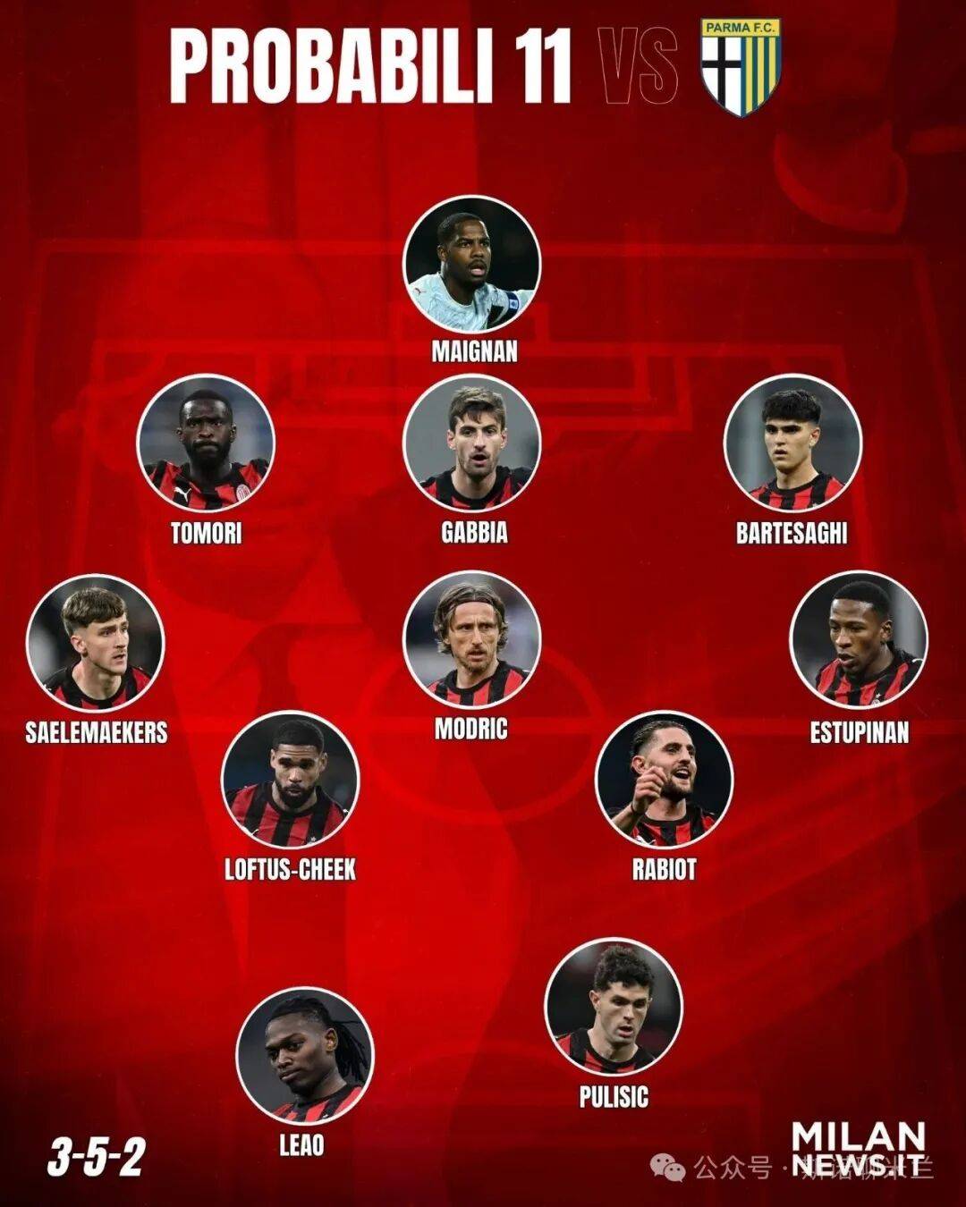 เวลา 18:00 น. วันที่ 22 กุมภาพันธ์ (01:00 น. ของวันถัดไปตามเวลาปักกิ่ง) มิลานจะเป็นเจ้าบ้านรับการมาเยือนของปาร์มา ในเกมการแข่งขันเซเรีย อา นัดที่ 26