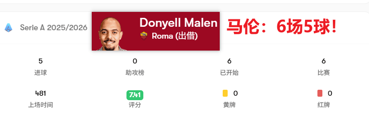 มักกล่าวกันว่านักเตะพรีเมียร์ลีกที่ย้ายไปเล่นในเซเรียอาเหมือนเดินเล่นในสวน และมาเลนก็ไม่ใช่ข้อยกเว้น ด้วยการทำห้าประตูจากหกนัด เขาได้กลายเป็นนักเตะคนสำคัญของโรม่าในทันที