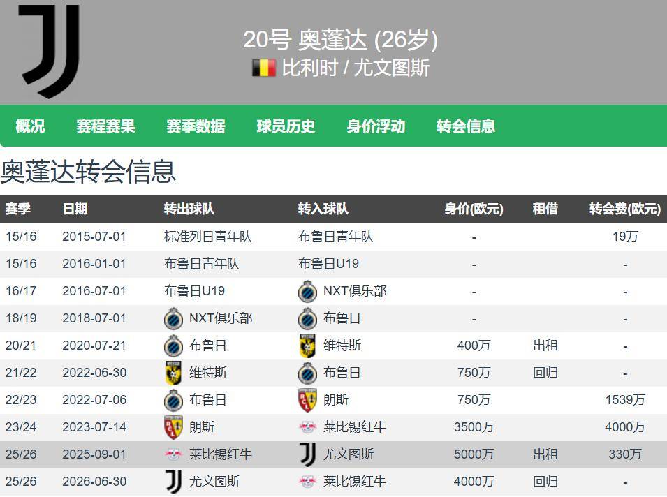 Obponda เข้าร่วมกับ Juventus ด้วยเงินกู้จาก Leipzig ด้วยค่าธรรมเนียมการโอน 3.3 ล้านยูโรในปีที่แล้ว ค่าใช้จ่ายในการซื้อคือ 40.6 ล้านยูโร และเงินเดือนประจำปีของผู้เล่นในยูเวนตุสสูงถึง 7.4 ล้านยูโร