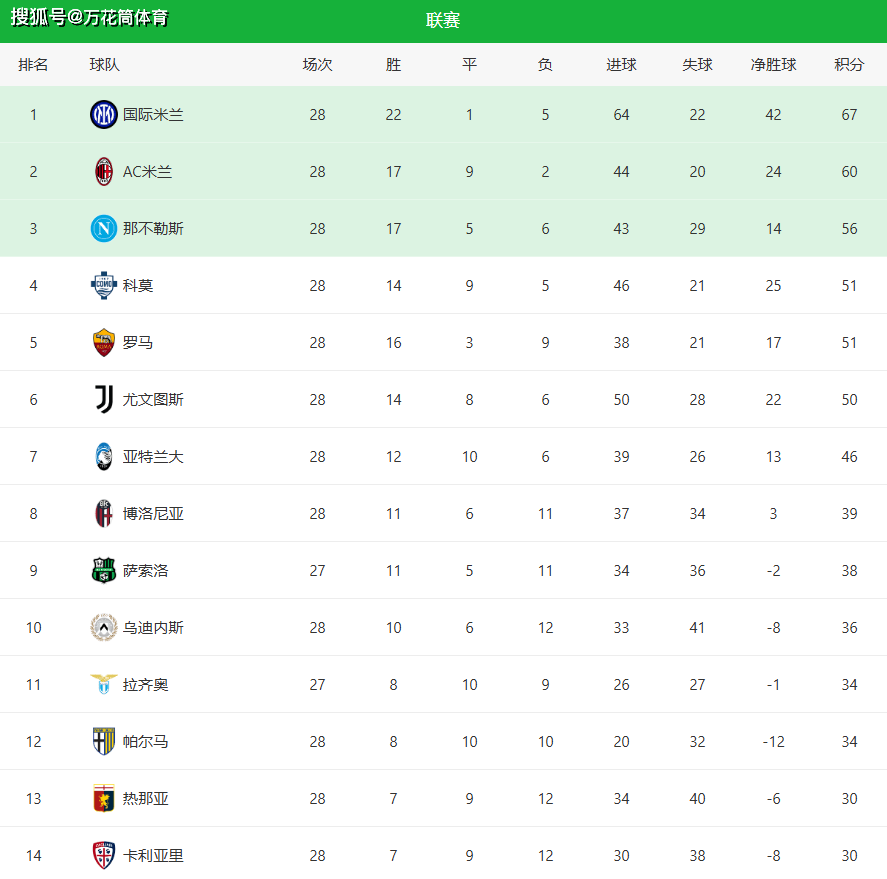 แม้ว่าเขาจะแพ้ดาร์บี้ แต่อินเตอร์ มิลานยังคงเป็นผู้นำในอันดับด้วยคะแนน 67 คะแนน AC มิลานทำคะแนนได้ 60 คะแนนทำให้ช่องว่างระหว่างสองฝ่ายแคบลงเหลือ 7 คะแนน อย่างไรก็ตาม เมื่อพิจารณาว่าเหลืออีกไม่มากในลีก มันยังเป็นเรื่องยากมากสำหรับ Rossoneri ที่จะคุกคามแชมป์อย่างแท้จริง