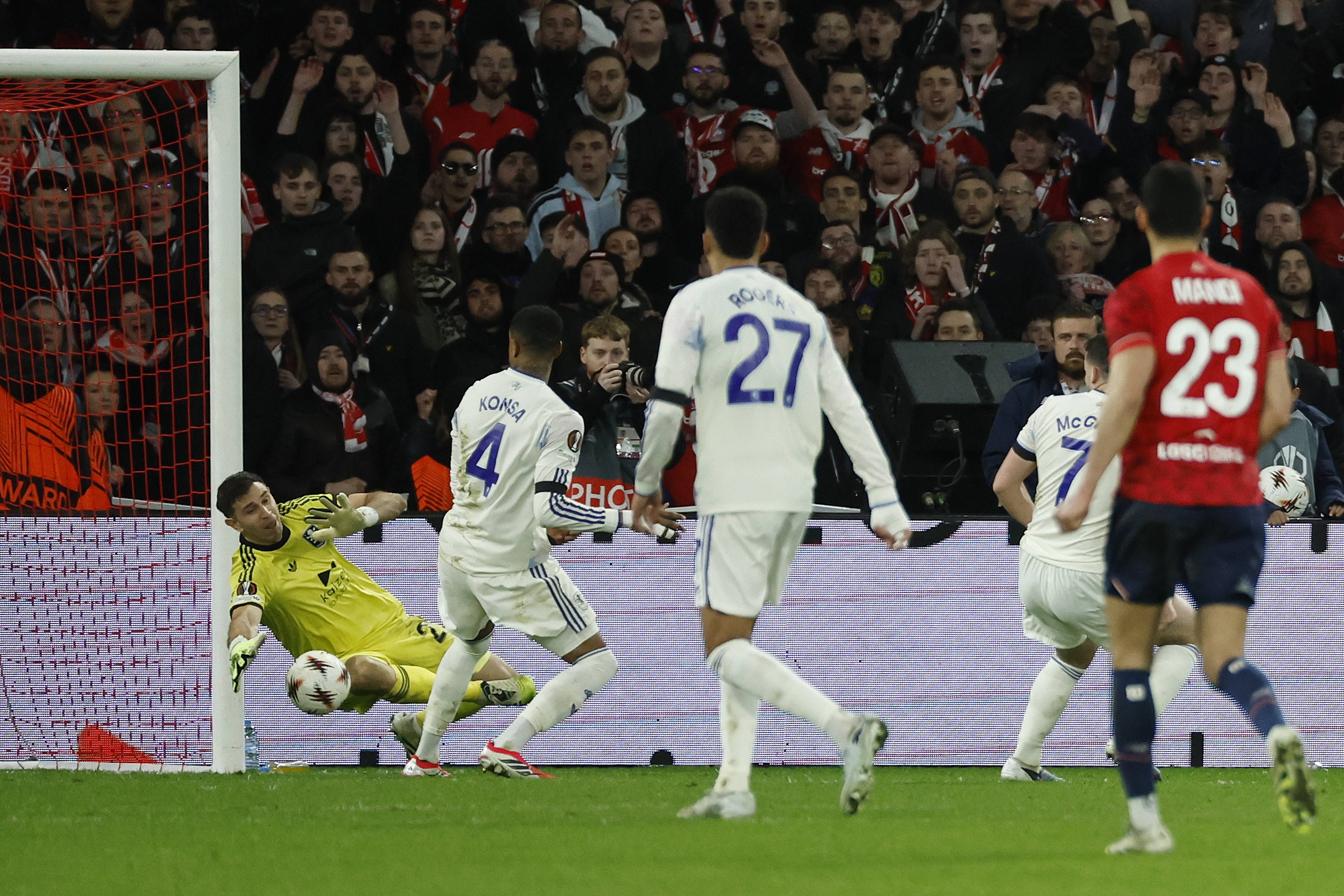 ผู้รักษาประตูของแอสตัน วิลล่า มาร์ติเนซ ในเกมวันที่ 12 มีนาคม สำนักข่าวซินหัว/OU XIN