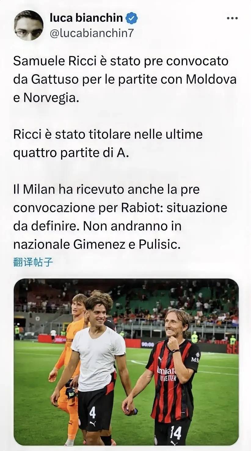 เซเรีย อา: ริชชี่ได้รับเลือกติดทีมชาติอิตาลี; ลงตัวจริงและทำผลงานได้ดีให้กับมิลานในสี่นัดล่าสุดของลีก ข่าว กัตตูโซ่