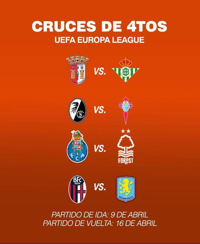 เมื่อวันที่ 20 มีนาคม ตามเวลาปักกิ่ง รอบที่สองของรอบชิงชนะเลิศยูโรปาลีก 1/8 ได้สิ้นสุดลงแล้ว และ 8 อันดับแรกของยูโรป้าลีกในฤดูกาลนี้ก็เปิดตัวอย่างเป็นทางการเช่นกัน พวกเขาคือบราก้า, เบติส, ไฟร์บวร์ก, เซลต้า, ปอร์โต, น็อตติงแฮม ฟอเรสต์, โบโลญญา, แอสตัน วิลล่า