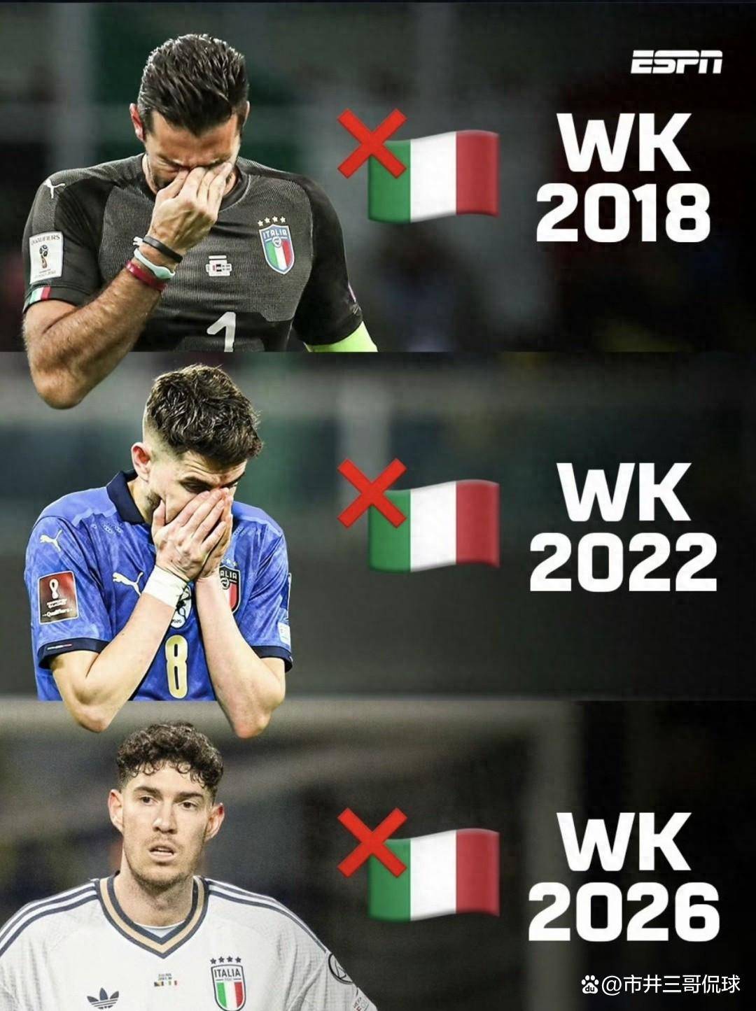 เมื่อการยิงจุดโทษที่สนาม Boheri Nobole Stadium สิ้นสุดลง คะแนนได้รับการแก้ไขที่ 1-4 และฟุตบอลอิตาลีถูกกระแทกไปที่เสาแห่งความอัปยศ อิมมูบีวัย 36 ปีเดินออกจากสนามโดยก้มหน้าลง ตาของวิลลาติ วัย 33 ปี แดงก่ำ และน้องโทนาลีและดอนนารุมมาส ก็ยังไม่รู้ว่าฟุตบอลโลกเป็นยังไง นับเป็นครั้งแรกในประวัติศาสตร์ของทีมอิตาลีที่พลาดฟุตบอลโลกติดต่อกันถึง 3 ครั้งติดต่อกัน และยังเป็นครั้งแรกในประวัติศาสตร์ของฟุตบอลโลกที่อดีตแชมป์ทีมแชมป์ต้องเจอกับความอับอายเช่นนี้ คำถามคือ เกิดอะไรขึ้นกับกองทัพเสื้อผ้าสีน้ำเงินที่เคยชนะ Hercules Cup?