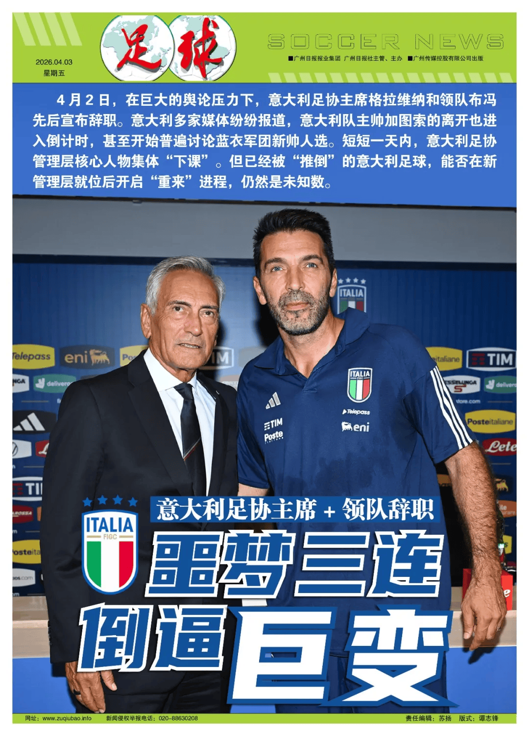 เขียน/ฟรอสต์ 3 พลาดติดต่อกันของฟุตบอลโลก ในที่สุดก็บังคับให้มีการเปลี่ยนแปลงที่รุนแรงที่สุดในฟุตบอลอิตาลี เมื่อวันที่ 2 เมษายน ภายใต้แรงกดดันจากความคิดเห็นของประชาชนจำนวนมาก ประธานสมาคมฟุตบอลอิตาลี Gravina และหัวหน้าทีม Buffon ได้ประกาศลาออก สื่อหลายสื่อในอิตาลีรายงานว่าการจากไปของโค้ชทีมอิตาลี Gattuso ได้เข้าสู่การนับถอยหลังแล้ว และเริ่มหารือเกี่ยวกับโค้ชคนใหม่ของ Blue Clothing Corps ในเวลาเพียงวันเดียว บุคคลสำคัญของผู้บริหารสมาคมฟุตบอลอิตาลี "ไล่ออก" โดยรวม อย่างไรก็ตามยังไม่เป็นที่ทราบแน่ชัดว่าฟุตบอลอิตาลีซึ่งถูก "แทง" สามารถเริ่มกระบวนการ "รีสตาร์ท" ได้หลังจากมีการจัดการใหม่