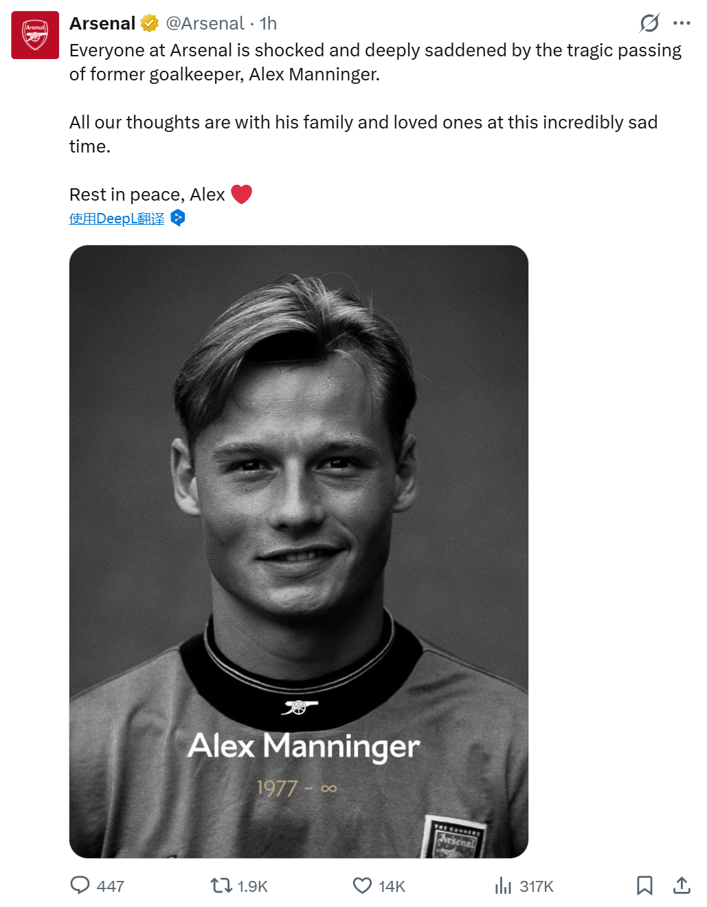 จากรายงานของ The Sports Weekly เมื่อวันที่ 16 เมษายน ข่าวร้ายได้ออกมาจากฟุตบอลยุโรป: อดีตประตูแห่งชาติออสเตรีย Alexander Manninger เสียชีวิตจากอุบัติเหตุจราจรร้ายแรงเมื่ออายุ 48 ปี
