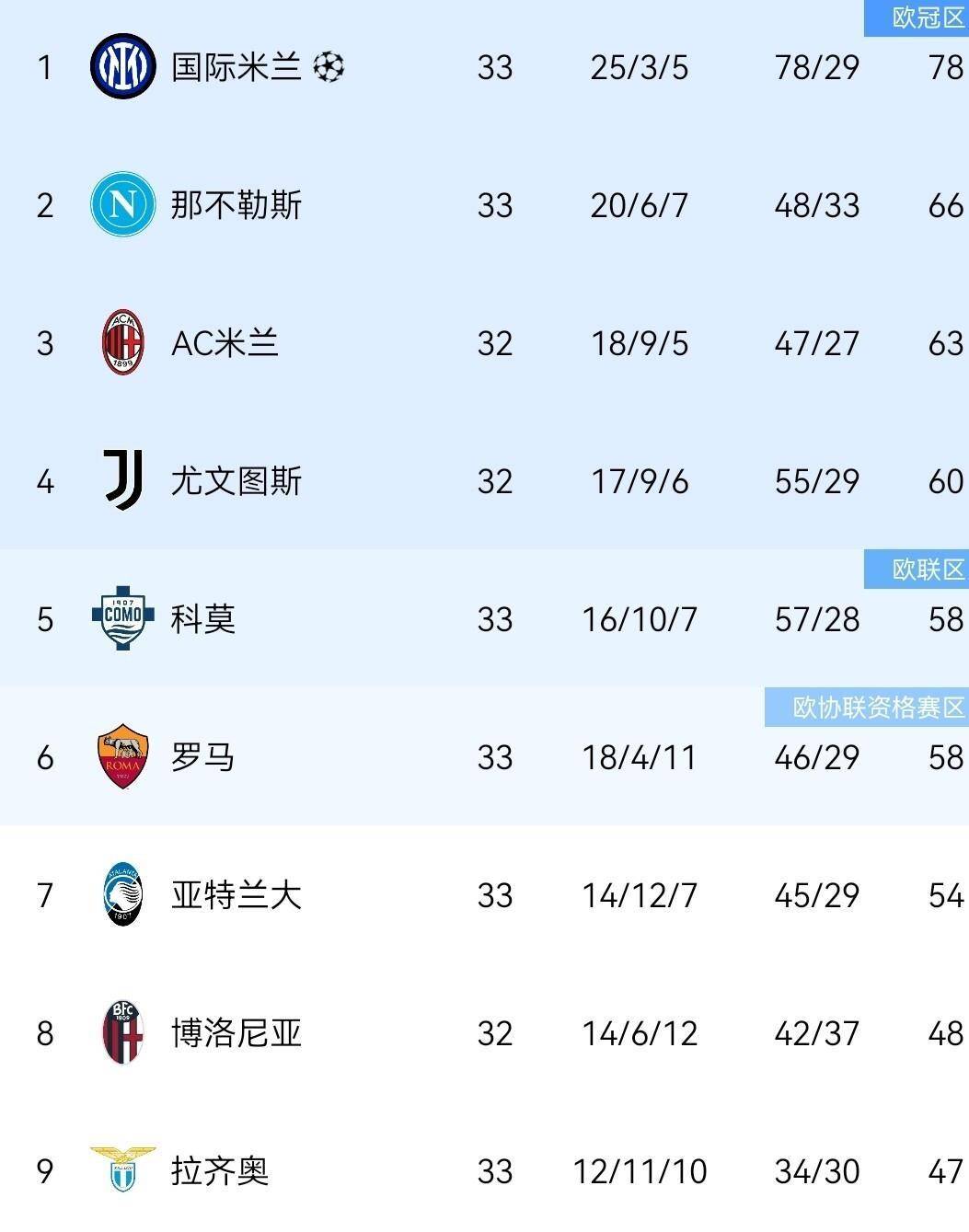 มิลานและยูเวนตุสยังไม่ได้เล่นรอบนี้ เมื่อพวกเขาเห็นอันดับและผลลัพธ์ พวกเขาคงมีความสุข สถานการณ์ที่อาจต้องหยุดชะงักก็ชัดเจนขึ้นมาก ในเกมถัดไป ตราบใดที่พวกเขาทำตามความคาดหวังและทำคะแนนได้สามแต้มอย่างต่อเนื่อง พวกเขาสามารถยึดความคิดริเริ่มของการแข่งขันครั้งที่สี่ไว้ในมือของพวกเขาเองได้อย่างมั่นคง ประตูสู่คุณสมบัติแชมเปียนส์ลีก มันเปิดกว้างสำหรับพวกเขามากขึ้น