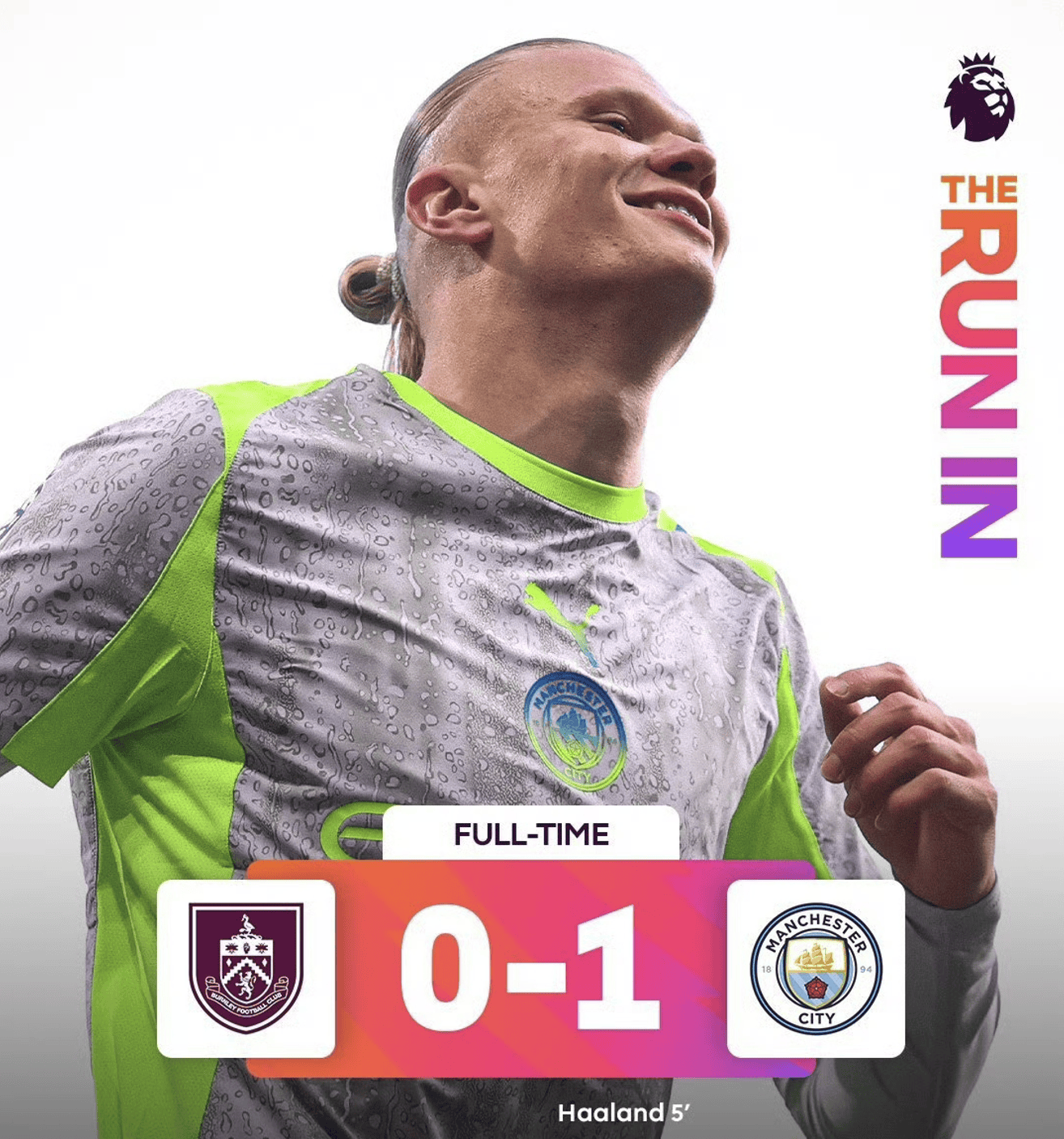 แมนเชสเตอร์ ซิตี้ เอาชนะ อาร์เซนอล ในรอบสุดท้ายเพื่อเอาชนะศึกภูเขาเทียนหวาง ในรอบ 34 ของพรีเมียร์ลีก แมนเชสเตอร์ ซิตี้ เยือนในเกมเยือนกับเบิร์นลี่ย์ แม้ว่าเบิร์นลี่ย์จะเป็นทีมรองสุดท้ายในพรีเมียร์ลีกเกมนี้เล่นได้ไม่ง่ายนักเพราะเบิร์นลี่ย์จะตกชั้นไปครองแชมป์ตราบเท่าที่เขาแพ้เกมนี้ ในการเผชิญหน้ากับทีมตกชั้นในพรีเมียร์ลีกโดยไม่ต้องถอย แมนเชสเตอร์ซิตี้ทำประตูได้ใน 5 นาทีและโดคุช่วยฮาร์แลนด์ทำประตูได้ ตั้งแต่นั้นมา แมนเชสเตอร์ ซิตี้ ยังคงขึ้นนำ 1-0 จนถึงจุดจบ และเบิร์นลีย์ตกชั้นก่อนกำหนด