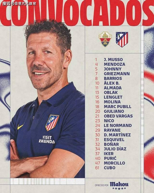 แอตเลติโก มาดริด รายงานรายชื่อรอบที่ 33 ของลาลีกาสำหรับเอลเช Rugeri, Himens, Hantsko, Marcos Llorente, Cork, Thelot, Lukeman และ Julian Alvarez (Little Spider) ขาดไปทั้งหมด 8 คน