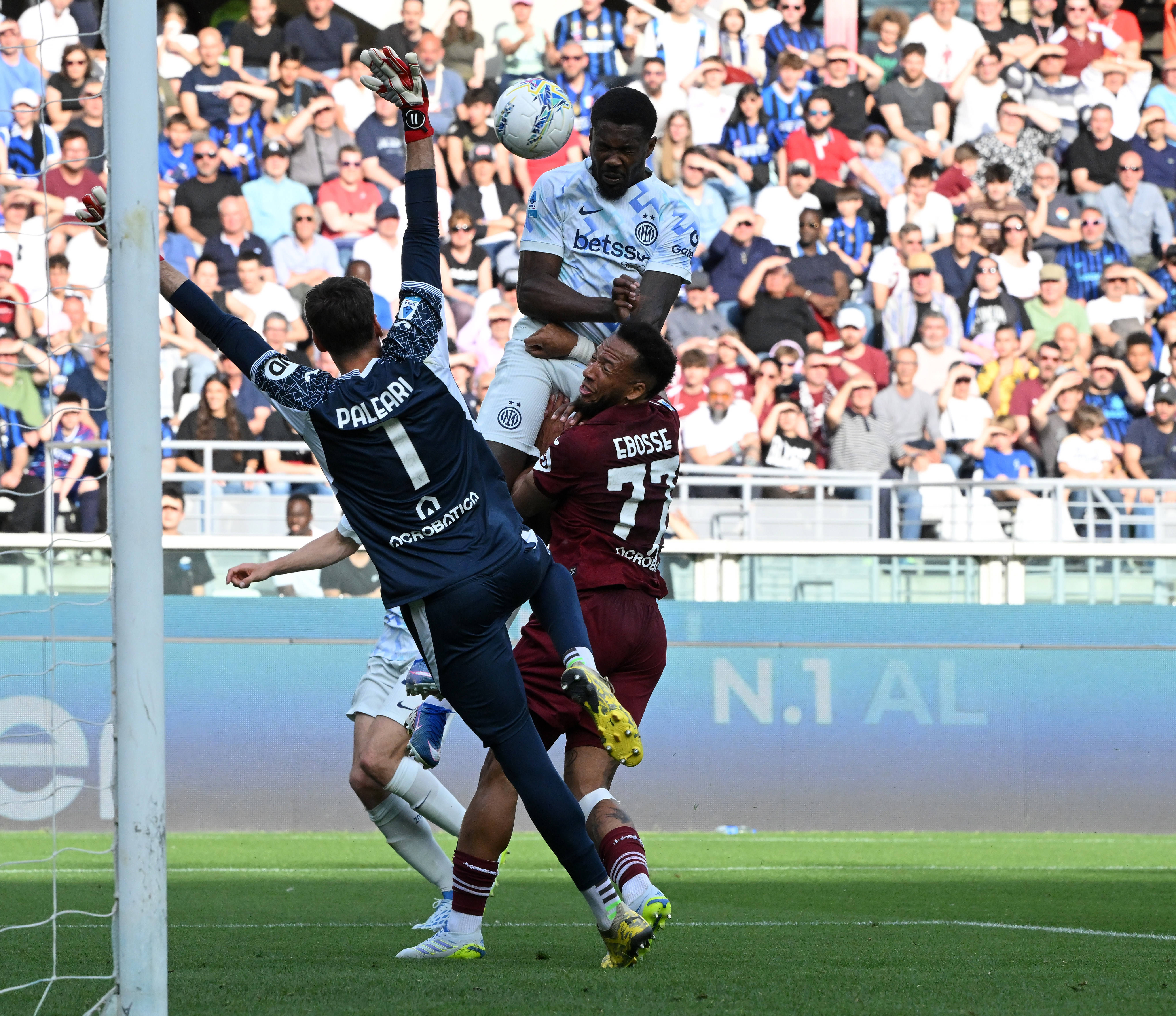 ผู้เล่นอินเตอร์ มิลาน ทูรัม ในวันที่ 26 เมษายน (ตอนที่ 1) โหม่งในเกม สำนักข่าวซินหัว (ภาพโดย Alberto Linglia)