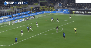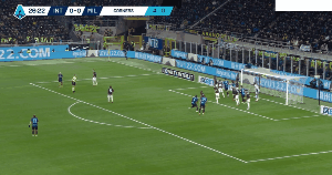 จากนั้น การยิงของทัลลัมจากในเขตโทษก็ถูกขัดขวางโดยเมนญานอีกครั้ง ขณะที่การยิงของบาเรลล่าที่มุ่งไปยังลอทาโร่ดูเหมือนจะเข้าประตูไปอย่างสวยงาม แต่เมนญานก็พุ่งไปทางซ้ายอย่างรวดเร็วและสามารถปัดบอลออกไปได้
