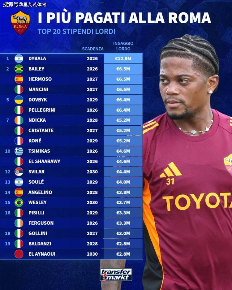 โดยธรรมชาติแล้ว มีผู้เล่นสามคนที่แบ่งปันเงินเดือนสูงสุดเป็นอันดับสองที่ 6.5 ล้านยูโร ได้แก่ ผู้เล่นใหม่ Bailey ซึ่งสัญญาของเขาก็จะหมดลงในปีหน้าเช่นกัน ร่วมกับกองหลังชาวสเปน Hermoso และกองหลังชาวอิตาลี Mancini ซึ่งสัญญาของพวกเขายังคงอยู่จนถึงปี 2027 โดยรวมแล้ว การมีส่วนร่วมของ Bailey นั้นดูด้อยกว่า Hermoso และ Mancini อย่างเห็นได้ชัด โดยเฉพาะอย่างยิ่งเมื่อพิจารณาถึงอาการบาดเจ็บที่เกิดขึ้นซ้ำๆ ซึ่งทำให้แฟนๆ ของ Roma ผิดหวังอยู่บ่อยครั้งสถานการณ์นี้จะก่อให้เกิดความซับซ้อนที่เกี่ยวข้องกับการโอนย้ายอย่างหลีกเลี่ยงไม่ได้