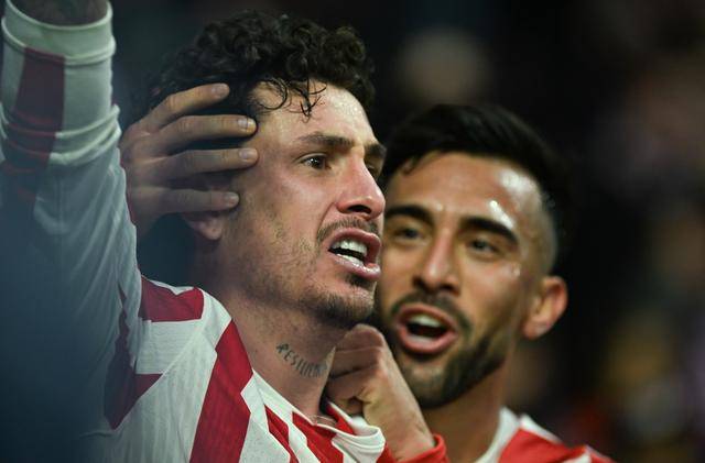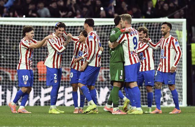 ↑ นักเตะแอตเลติโก มาดริด ฉลองประตูระหว่างการแข่งขัน