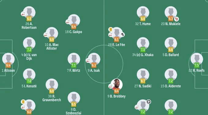 รายชื่อผู้เล่นตัวจริงของลิเวอร์พูลมีอลิสซอน เบ็คเกอร์เฝ้าเสา โดยมีเวอร์จิล ฟาน ไดจ์ค และอิบราฮิมา โกนาเต้คุมแนวรับ ส่วนสามกองกลางตัวรุกประกอบด้วยไวจ์นัลดุม, โซโบสลัย และแม็คอัลลิสเตอร์ซันเดอร์แลนด์ส่งโรฟส์ลงเฝ้าเสา โดยมีทัลบี้, มูเจเล และฮิวม์ตั้งเป้าสร้างความเซอร์ไพรส์ให้กับทีมที่เพิ่งเลื่อนชั้น เกมนี้ช่วยเสริมความมั่นใจให้กับทีมในการเก็บแต้มสำคัญได้อย่างแน่นอน