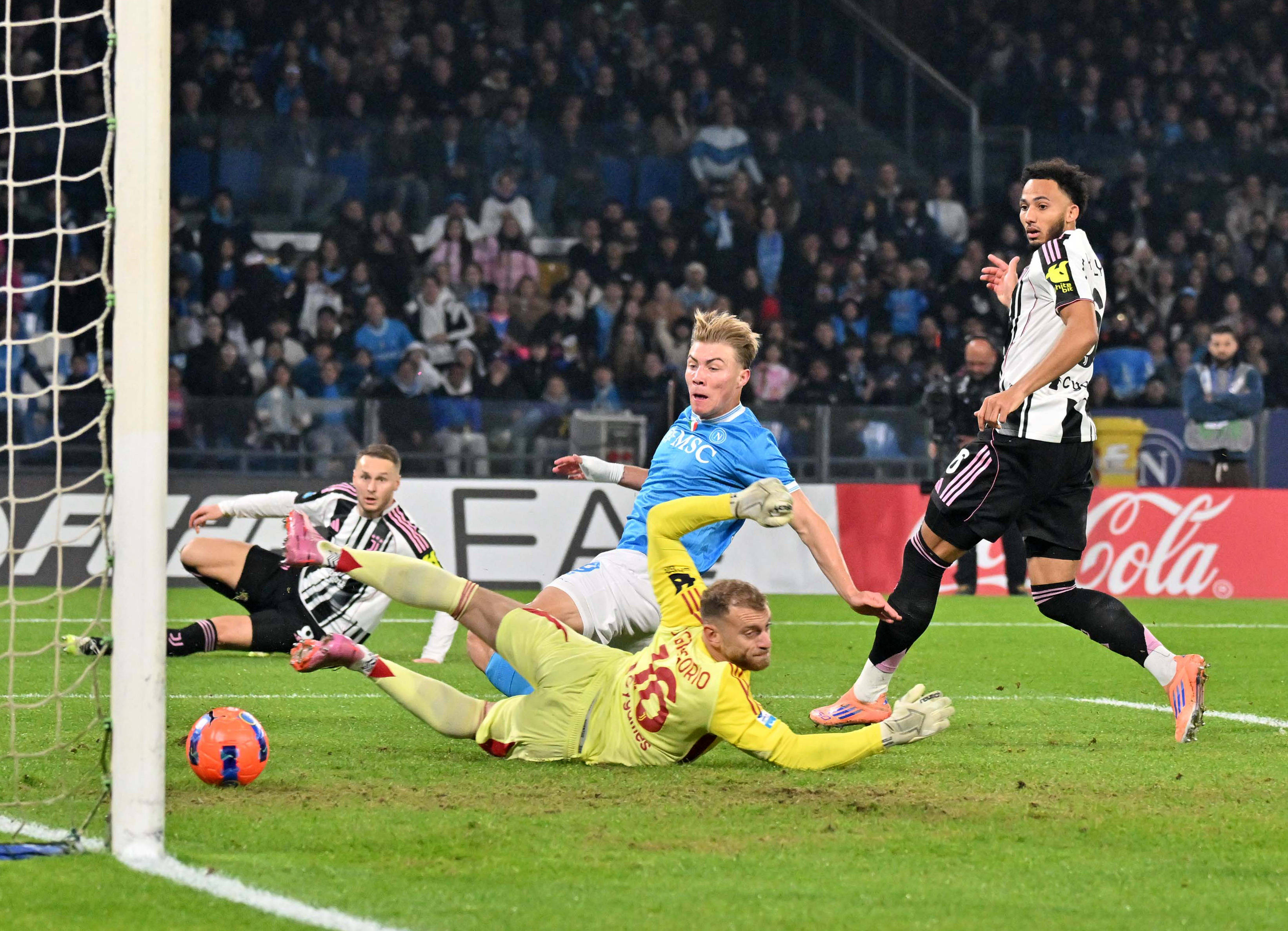 นาโปลีทำประตูได้เร็วในนัดนี้ ในนาทีที่เจ็ด โฮจ์ลุนด์รับบอลจากการครอสของเพื่อนร่วมทีม เนเรส และยิงเข้าประตูจากระยะใกล้ จากนั้นทั้งสองทีมก็แลกการโจมตีกันไปมา โดย เคลลี่ ของยูเวนตุสพลาดโอกาสทองในช่วงท้ายครึ่งแรก ขณะที่ แม็คโทมิเนย์ ของเจ้าบ้านก็ยิงลูกโหม่งไปชนเสา