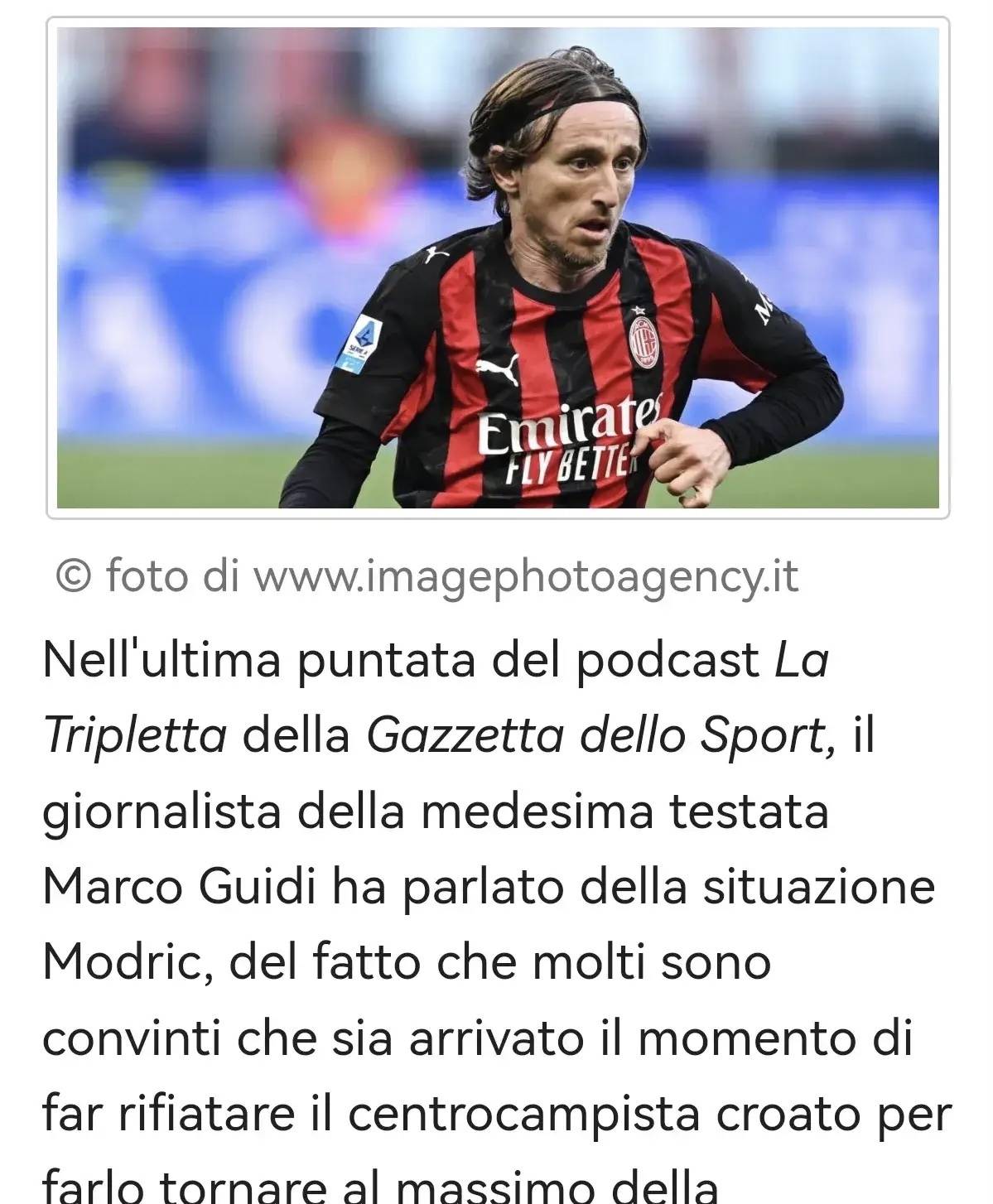 ในพอดแคสต์ Trident ของ Corriere dello Sport ฉบับล่าสุด ผู้สื่อข่าวของหนังสือพิมพ์ มาร์โก กุยดิ ได้พูดคุยเกี่ยวกับสถานการณ์ปัจจุบันของ ลูก้า โมดริช และมุมมองที่แพร่หลายว่ากองกลางชาวโครเอเชียควรได้รับการพักผ่อนเพื่อฟื้นฟูฟอร์มที่ดีที่สุดตั้งแต่เริ่มต้นฤดูกาล: