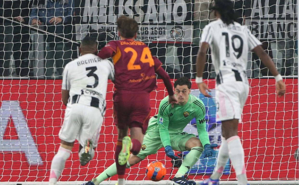 ในช่วงเริ่มต้นของการแข่งขัน ยูเวนตุสได้ลูกฟรีคิกนอกเขตโทษในนาทีที่ 8 ลูคัทเทลลีพยายามยิงแต่ถูกสกัดไว้ได้อย่างยอดเยี่ยมโดยผู้รักษาประตูของโรม่า สลาวิค ในนาทีที่ 22 ยูเวนตุสเริ่มบุกอีกครั้ง: อิลดิสส่งบอลข้ามไป, โอปันดาจ่ายต่อ และลูกยิงตามของทูลัมลอยข้ามคานออกไปในนาทีที่ 37 เวสลีย์เปิดบอลต่ำจากฝั่งซ้าย แต่ลูกยิงระยะเผาขนของดีบาล่าจอมทัพกลางสนามกลับเฉียดเสาออกไป เมื่อเกมใกล้จะจบครึ่งแรก ในนาทีที่ 43 อิลดิสเปิดบอลจากฝั่งซ้ายให้คัมเบียสโซ่ ก่อนที่คัมเบียสโซ่จะจ่ายต่อให้คอนเซเซาที่ไม่มีผู้เล่นประกบในกรอบเขตโทษ คอนเซเซาซัดบอลอย่างเยือกเย็นด้วยลูกยิงเฉียงเข้าไปตุงตาข่าย ส่งยูเวนตุสขึ้นนำ 1-0 ก่อนจบครึ่งแรก