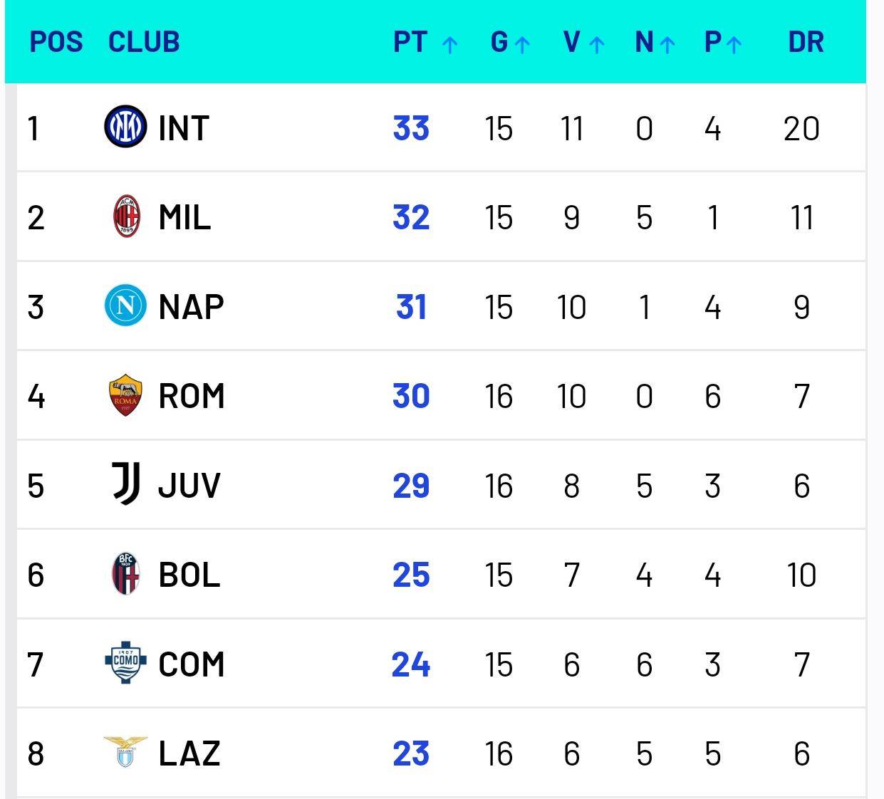 ทั้งสองสโมสรจากมิลาน, นาโปลี และโบโลญญา ได้เข้าร่วมการแข่งขันซูเปอร์คัพอิตาลีในซาอุดีอาระเบียในฤดูกาลนี้ ส่งผลให้ทั้งสี่ทีมพลาดการแข่งขันในรอบ 16 ทีมของเซเรีย อา ตามสถานการณ์ปัจจุบัน อินเตอร์, มิลาน และนาโปลี ซึ่งแต่ละทีมเล่นน้อยกว่าหนึ่งเกม ครองตำแหน่งสามอันดับแรกในตารางลีก ขณะที่โรม่าและยูเวนตุสอยู่ในอันดับที่สี่และห้า ด้วยคะแนนห่างกันเพียงหนึ่งแต้ม การแข่งขันยังคงดุเดือดและเข้มข้น
