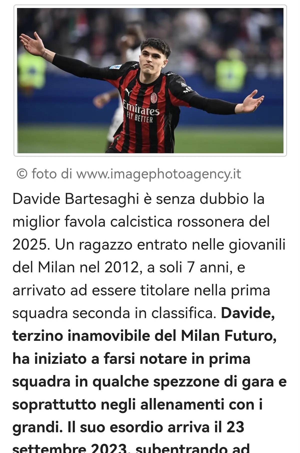 ดาวิด แบร์เตซากี คือเรื่องราวฟุตบอลที่น่าหลงใหลที่สุดของรอสโซเนรีในปี 2025 อย่างไม่ต้องสงสัย เด็กหนุ่มที่เข้าร่วมสถาบันเยาวชนของมิลานในปี 2012 ด้วยวัยเพียง 7 ขวบ ได้กลายเป็นผู้เล่นตัวจริงสำรองของทีมชุดใหญ่ไปแล้ว ครั้งหนึ่งเขาเคยเป็นแบ็กซ้ายที่ไม่มีใครโต้แย้งในทีมเยาวชนของมิลาน ดาวิดเริ่มสร้างชื่อเสียงจากการเล่นในทีมชุดใหญ่เป็นครั้งคราว โดยเฉพาะในช่วงการฝึกซ้อมร่วมกับดาวดังที่มีชื่อเสียง