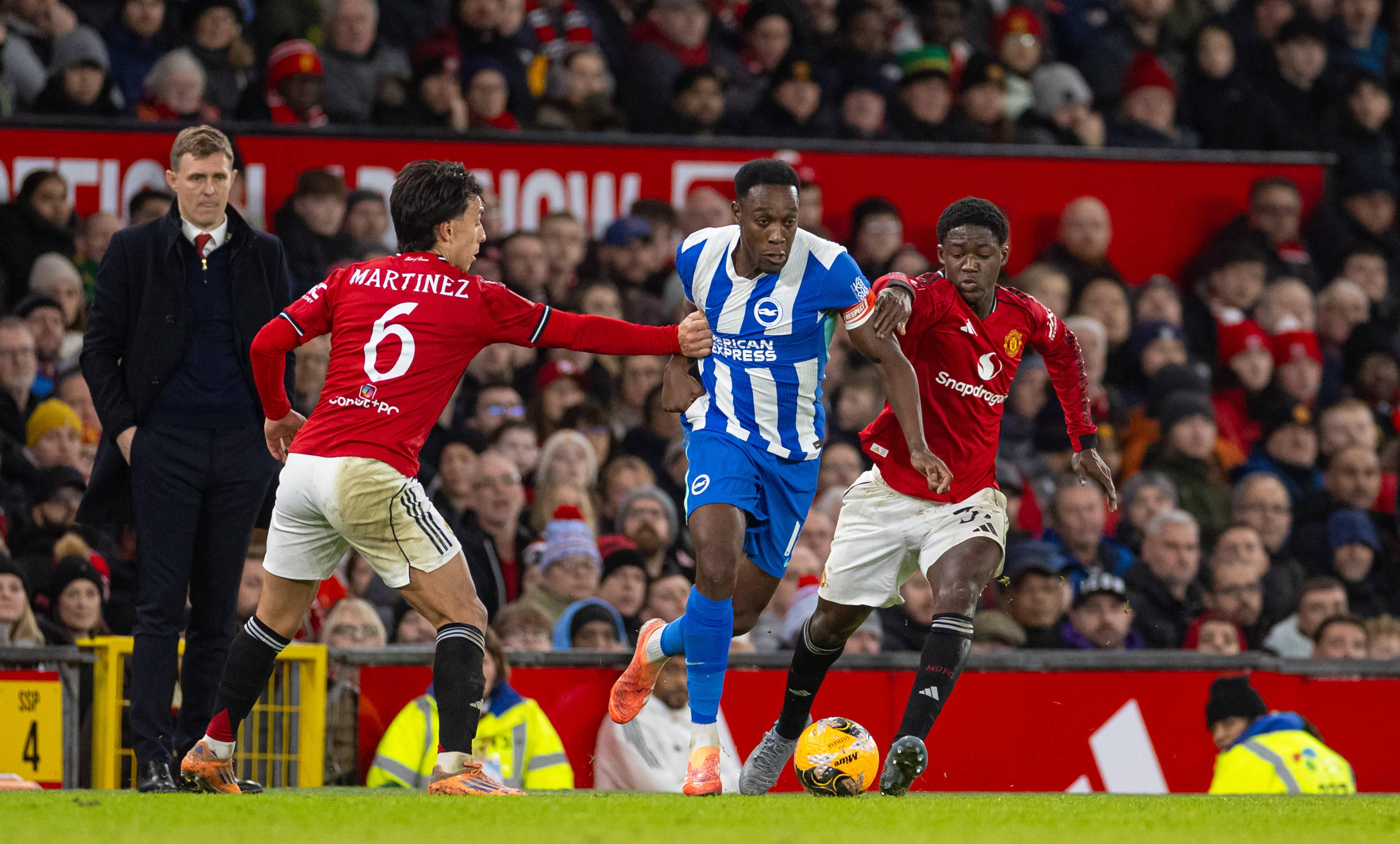 เมื่อวันที่ 11 มกราคม นักเตะแมนเชสเตอร์ ยูไนเต็ด แย่งชิงการครองบอลกับ แจ็ค ฮินเชลวูด ของไบรท์ตัน แอนด์ โฮฟ อัลเบี้ยน (ด้านล่าง) ระหว่างการแข่งขัน สำนักข่าวซินหัว