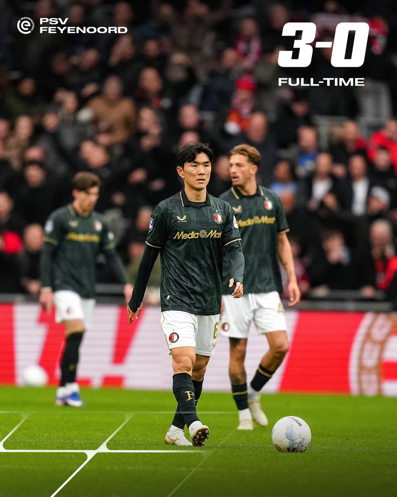 【เอเรดิวิซี】รอบที่ 21: พีเอสวี ไอนด์โฮเฟน 3-0 เฟเยนูร์ด; ฮวาง อิน-บอม [เฟเยนูร์ด] ลงเล่นในตำแหน่งกองกลางตัวรุกเป็นเวลา 64 นาที